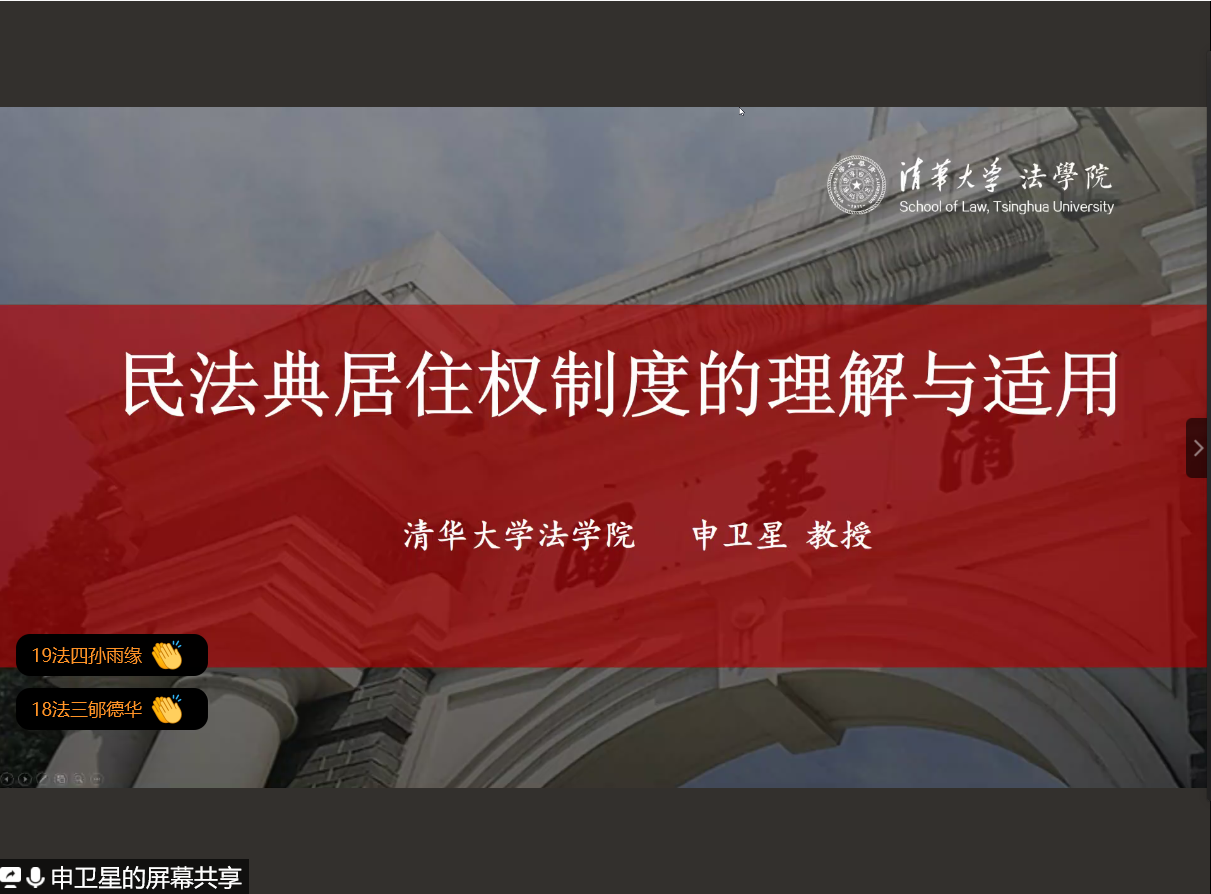 申教授讲座题为“《民法典》居住权制度的解释论展开”,本次讲座采取线上方式进行,由星空平台法学院院长王宗正教授主持,钟瑞栋教授和何平副教授与谈。星空平台法学院的老师、学生、温州市法律实务界代表以及全国各地的法律专业人士500多人参加了本次讲座。