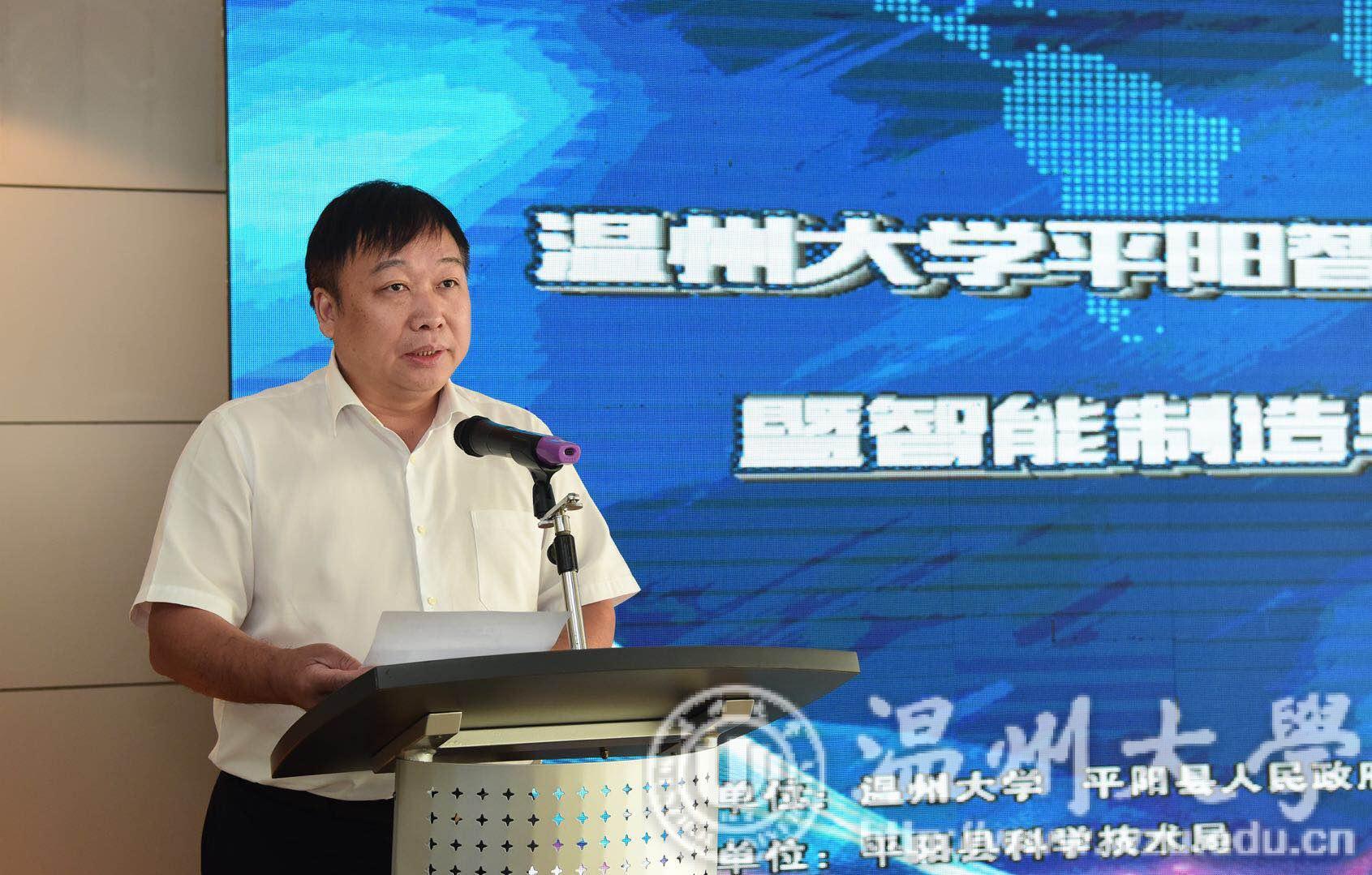 邵潘锋代表温州市科技局表示祝贺。他表示,星空平台平阳智能制造研究院的建设,是地方联合本土高校开展政产学研合作的有效途径,对于推动企业两化深度融合、推动产业技术创新具有重要作用。研究院的建设为平阳科技创新团队打造、科技成果转化提供了平台支撑。他希望,通过政校企三方的共同努力,政校合作、校企合作项目能够得到顺利实施,科技创新成果转化进一步加快。