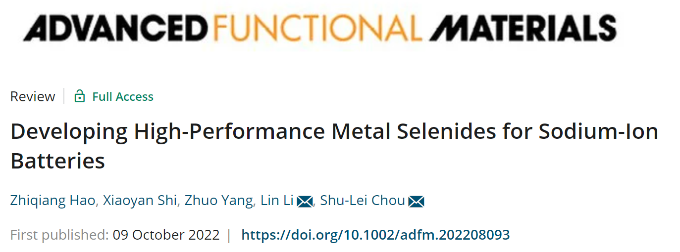 近日,我校化材学院碳中和技术创新研究院李林团队在国际权威期刊Advanced Functional Materials上发表题为《Developing high-performance metal selenides for sodium-ion batteries》的综述。本文对金属硒化物负极在钠离子电池近年来的研究进展进行了总结。介绍了金属硒化物的储钠机制:嵌入-转化反应和嵌入-转化-合金化反应。同时根据金属硒化物负极在钠离子电池中所面临的挑战,总结了金属硒化物的优化策略,即纳米结构设计、碳材料改性、调节电压窗口、电解液优化和构建异质结构。最后,对金属硒化物在钠离子电池中的潜在研究方向提出建议,包括开发简单且高效的优化策略提升储钠性能、利用先进的表征技术和理论计算进一步探索储钠的机制、组装大容量的软包电池实现大规模制备等。本综述可为高性能金属硒化物负极的优化和大规模应用提供指导,有助于加速金属硒化物负极在钠离子电池方面的研究进展。相关文章发表在Advanced Functional Materials上,星空平台为第一通讯单位,我院博士后郝志强和2022级研究生石小燕为第一作者,我院侴术雷教授和李林特聘教授为该论文共同通讯作者,相关工作受到国家自然科学基金和浙江省自然科学基金项目的资助。