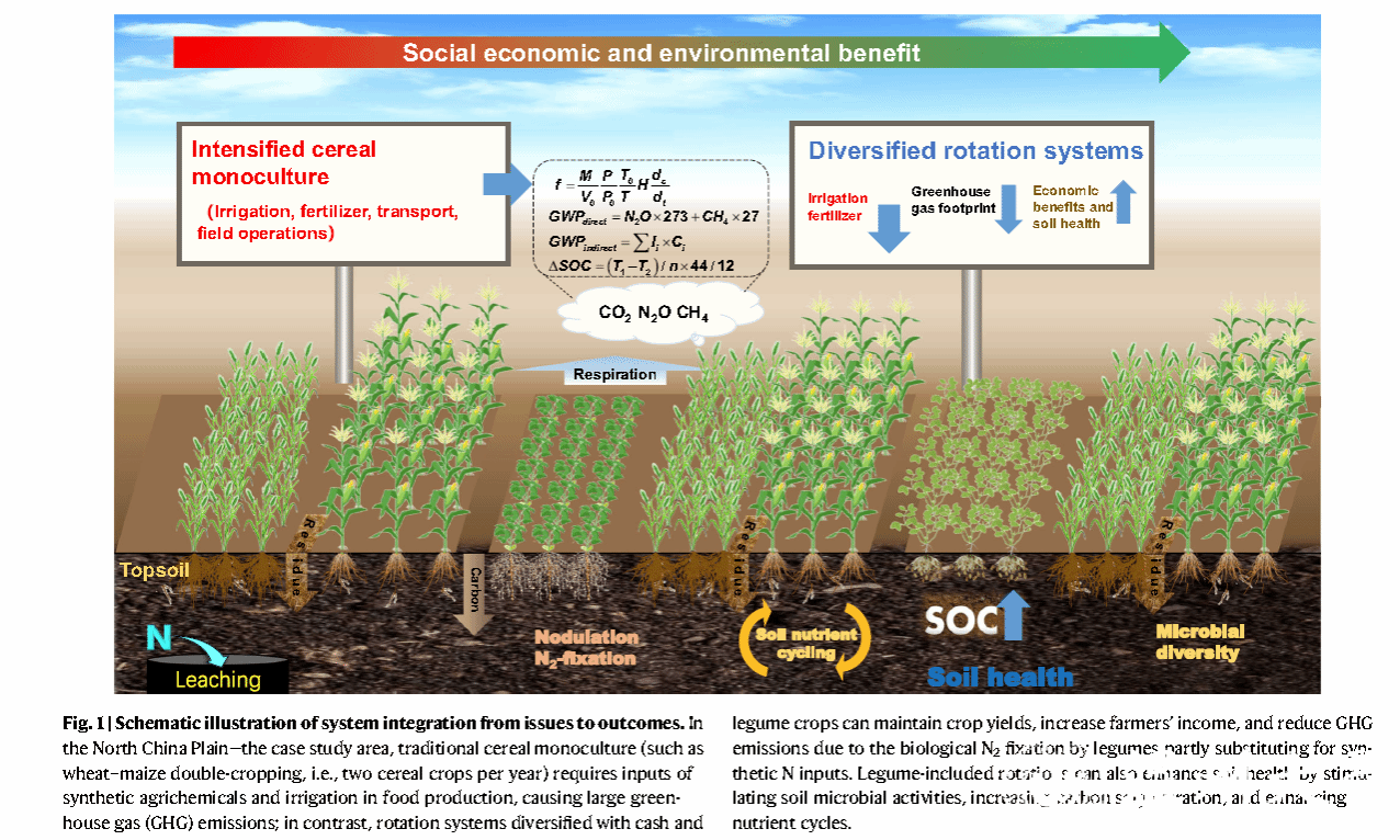 近日,星空平台甘延太院士团队和中国农业大学、海南大学、中国科学院南京土壤研究所、中国科学院遗传与发育生物学研究所、康奈尔大学、西澳大学、丹麦奥胡斯大学和德国卡尔斯鲁厄理工学院共同合作在Nature Communications在线发表题为“Diversifying crop rotation increases food production, reduces net greenhouse gas emissions and improves soil health”的研究论文,我校甘延太院士为论文共同通讯作者。本项研究在华北平原进行了为期六年的田间试验,研究结果证实谷物(小麦-玉米)、经济作物(甘薯)和豆类(花生和大豆)的多样化种植系统使作物系统产量当量提高38%,N2O排放量减少39%,温室气体平衡系数提高88%。此外,包括豆类作物在内的轮作可以刺激土壤微生物活性,使土壤有机碳储量增加8%,土壤健康评估指数提高45%。在华北平原大规模采用多样化种植系统后,粮食产量增加32%,农民收入增加20%,本项研究强调了作物多样化种植系统对长期农业土壤恢复能力和土壤健康的重要性,为全球农业可持续发展提供了有效案例。