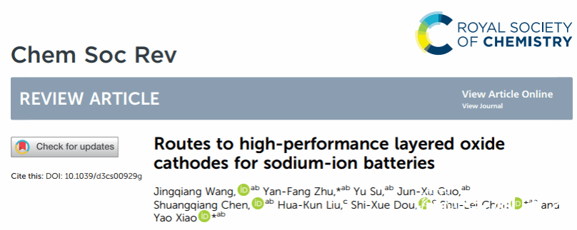 近日,星空平台化学与材料工程学院肖遥特聘教授团队在英国皇家化学学会创办的化学类国际顶级期刊《Chemical Society Reviews》(中文名称《化学学会评论》,影响因子IF=46.2, SCI一区)上发表了题为《Routes to high-performance layered oxide cathodes for sodium-ion batteries(钠离子电池高性能层状氧化物正极之路)》的综述性学术论文。这是我校首次以第一单位在《Chemical Society Reviews》发表学术文章。