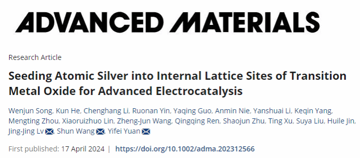 近日,我校王舜/袁一斐/吕晶晶教授课题组在国际顶级期刊《Advanced Materials》发表题为“Seeding Atomic Silver into Internal Lattice Sites of Transition Metal Oxide for Advanced Electrocatalysis”的论文。该工作利用隧道结构的α-MnO2作为基底,将Ag原子链引入α-MnO2隧道内部,并且在MnO2表面通过共享晶格外延生长负载了Ag纳米颗粒,从而制备了双位点Ag催化剂。通过开发过渡金属氧化物晶格内部的催化剂负载位点,可以大大增加基底的催化活性中心,提高电催化二氧化碳还原的效率,并且隧道内部的催化剂由于金属离子-基底间的协同作用,导致其中间反应过程中的能垒显著降低。更重要的是,MnO2对内外的Ag催化剂物种均具有很强的约束作用,可以抑制Ag的团聚,从而提高催化剂的循环寿命。