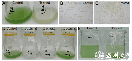 溶藻细菌(Algicidal bacteria)是一类能通过直接接触或释放溶藻物质间接来抑制藻类生长或破坏藻细胞结构的细菌统称。它们广泛存在于湖泊、水库及其附近土壤中,在蓝藻水华的暴发和消失中发挥着重要作用。而且,相较于物理法和化学法,基于溶藻菌的微生物控藻法因其高效、特异和生态友好性而受到广泛的关注和研究,被认为是十分具有发展前景的蓝藻水华防治方法。虽然已经有50余个种属的溶藻菌被鉴定、报道,但大多都是靶向微囊藻的相关工作,目前针对尖头藻溶藻菌的研究工作很少(仅3篇),且缺乏深入、细致的溶藻机制研究。