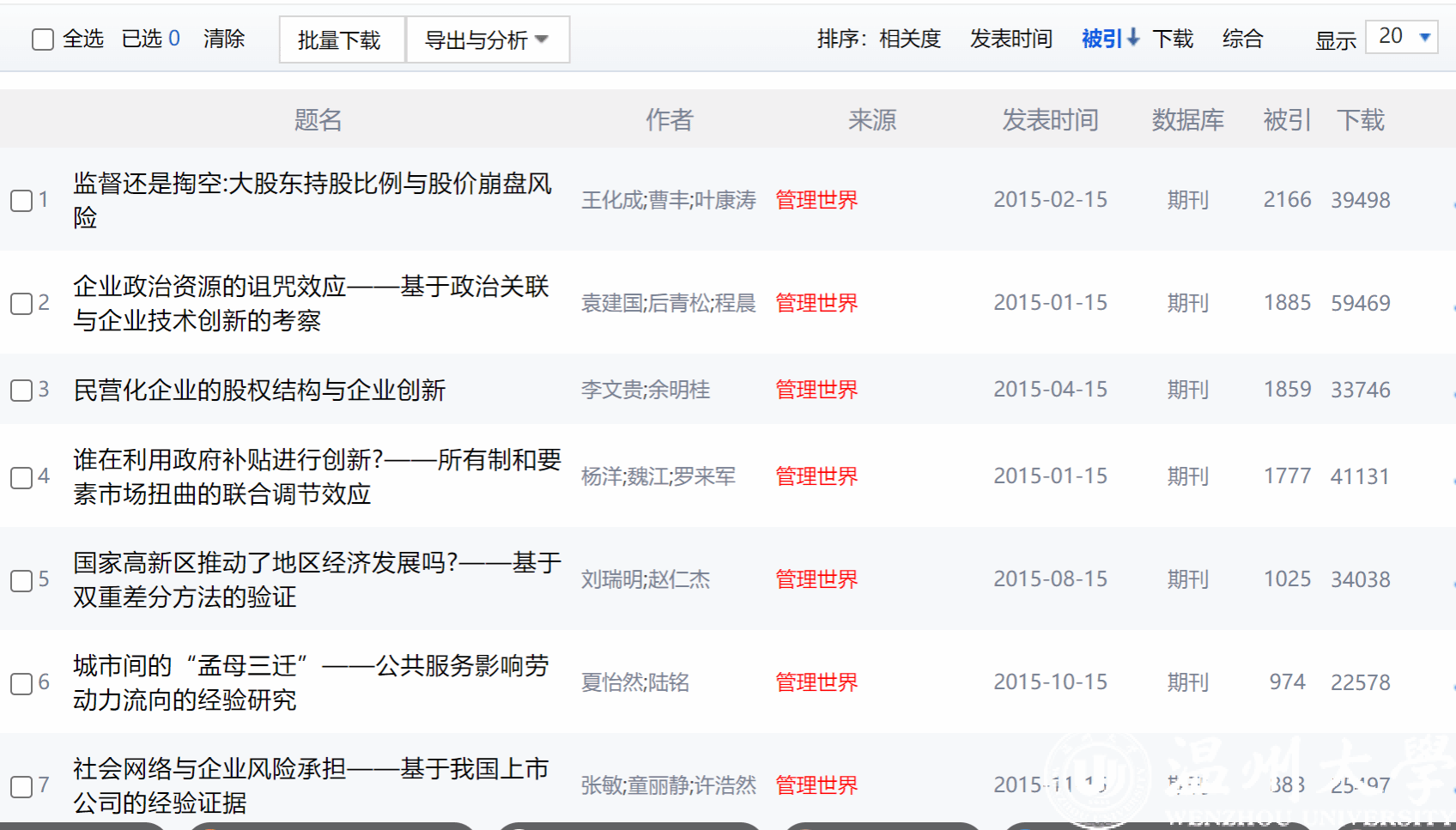 我校商学院夏怡然教授的《城市间的“孟母三迁”——公共服务影响劳动力流向的经验研究》被引次数高达974次,被列为《管理世界》2015年度发文被引TOP10。