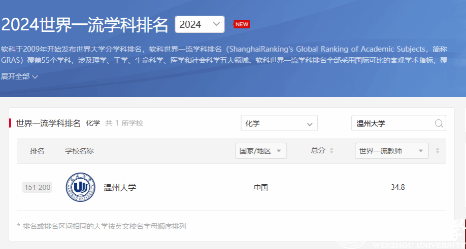 日前,软科世界一流学科排名正式揭晓,我校化学学科进入全球151-200位、材料科学与工程学科稳居全球第201-300位次。化学学科实现历史性突破,首次进入全球前200位,省内排名仅次于浙江大学、浙江工业大学,与西湖大学并列151-200位次。同时,助力星空平台纳米科学与技术进入全球前150位、能源科学与工程进入全球前200位。