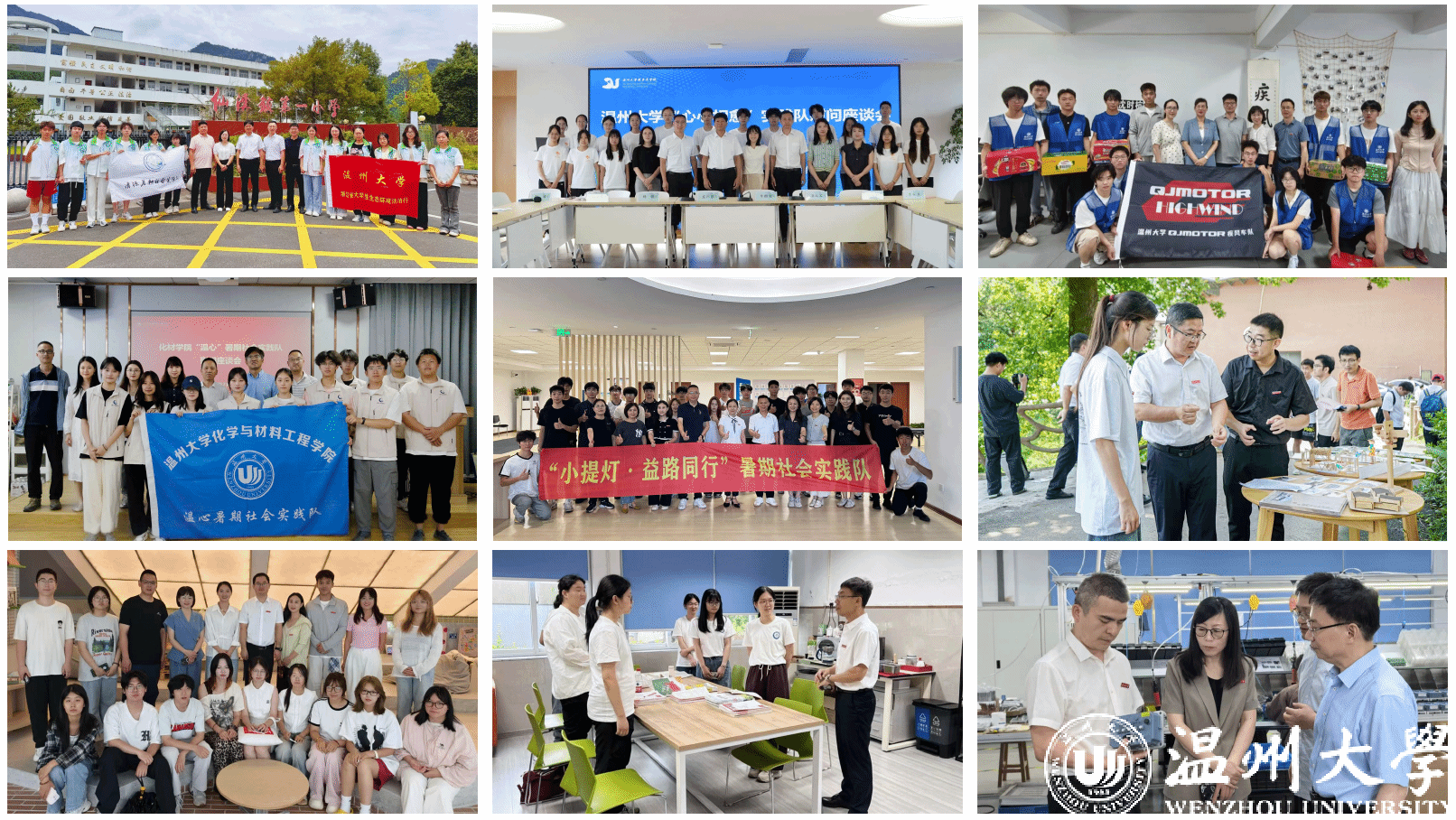 校领导还前往鹿城区青少年心灵润养中心(小鹿心屿)、乐清市仙溪镇第一小学、机电工程学院工程实训中心、温州市体育中心、文成县平和乡、泰顺县、丽岙华侨小学、浙江聚创智能科技股份有限公司等地慰问实践师生,开展主题座谈。他们鼓励实践队员在社会课堂中受教育、长才干、作贡献,在观察实践中坚定信念听党话、跟党走,在共同富裕和现代化先行的进程中努力绽放夺目的青春之光,在知行合一中以“家国情怀”为底色、“服务社会”为自觉,将专业知识转化为服务动能,用扎实学识和务实行动为企业发展与社会进步贡献青春力量。
