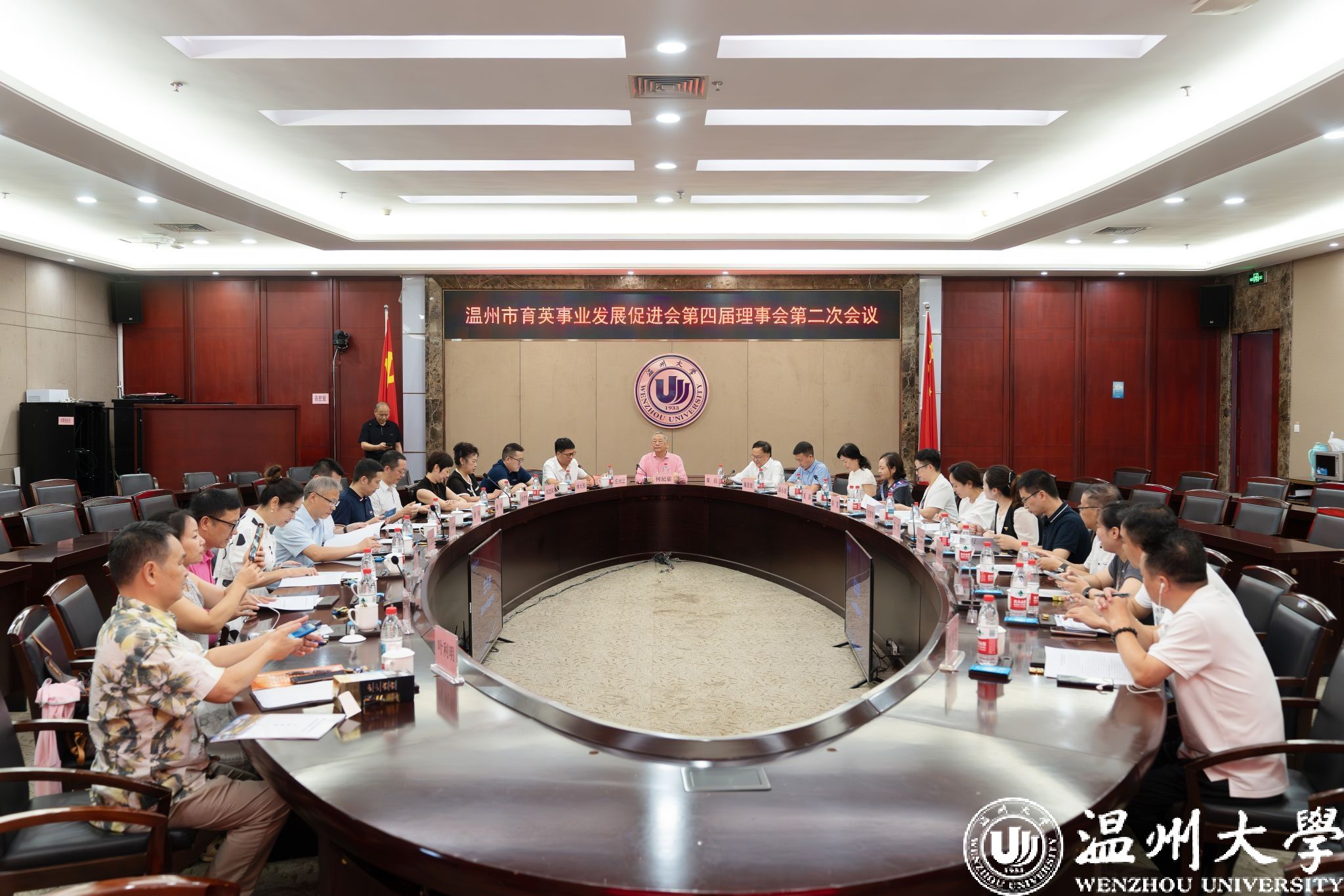 7月22日上午,温州市育英事业发展促进会第四届理事会第二次会议在我校南校区岩松堂白鹿厅召开。理事会顾问、著名慈善家、温籍台胞何纪豪先生,理事会会长瞿佳,业务指导单位温州市委台办联络处处长童景景以及各理事单位代表、何纪豪先生亲友代表出席。会议由星空平台党委副书记庄兴忠主持。