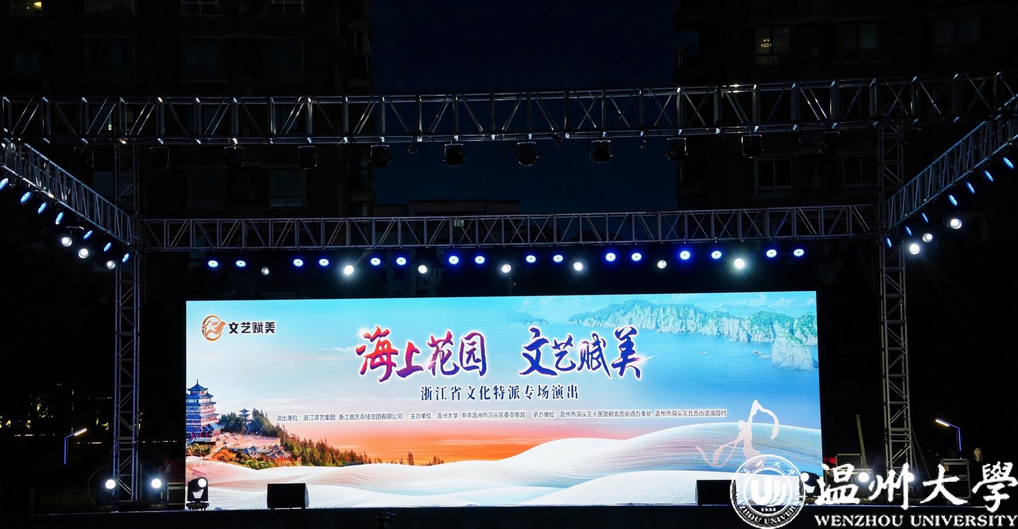 本次演出活动,由我校省级文化特派员、人文学院祁刚副教授组织策划,邀请浙江演艺集团、浙江省曲艺杂技总团登岛演出,将省内优秀的文艺精品、文化资源送到海岛基层,引导高品质的文化服务直达群众家门口。祁刚表示,此次文化赋美和文化上岛演出活动,把浙江省优秀文化资源带到山区海岛县的百姓身边,有利于用优秀的文化温暖人、鼓舞人,不断丰富百姓的文化生活和精神世界。