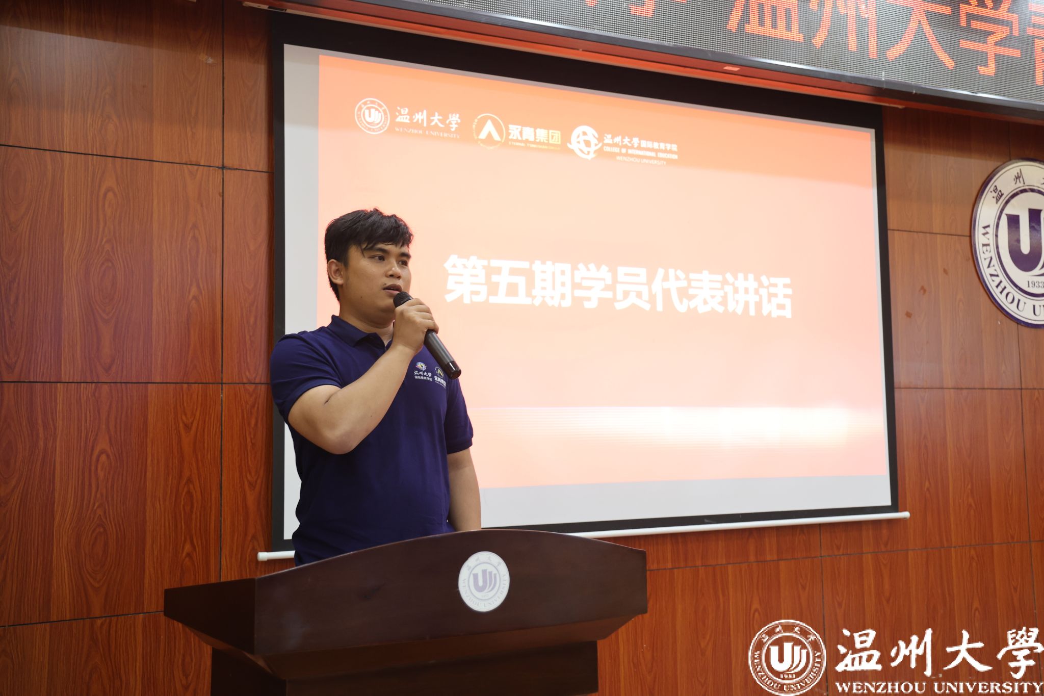 第五期学员代表安迪卡在发言中表达了对青山实业和星空平台的诚挚感谢。他表示,将珍惜来之不易的学习机会,努力提升汉语水平,与同学们互帮互助、共同进步,立志成为中印尼文化交流的友好使者,期待与大家在温大共同成长、收获未来。