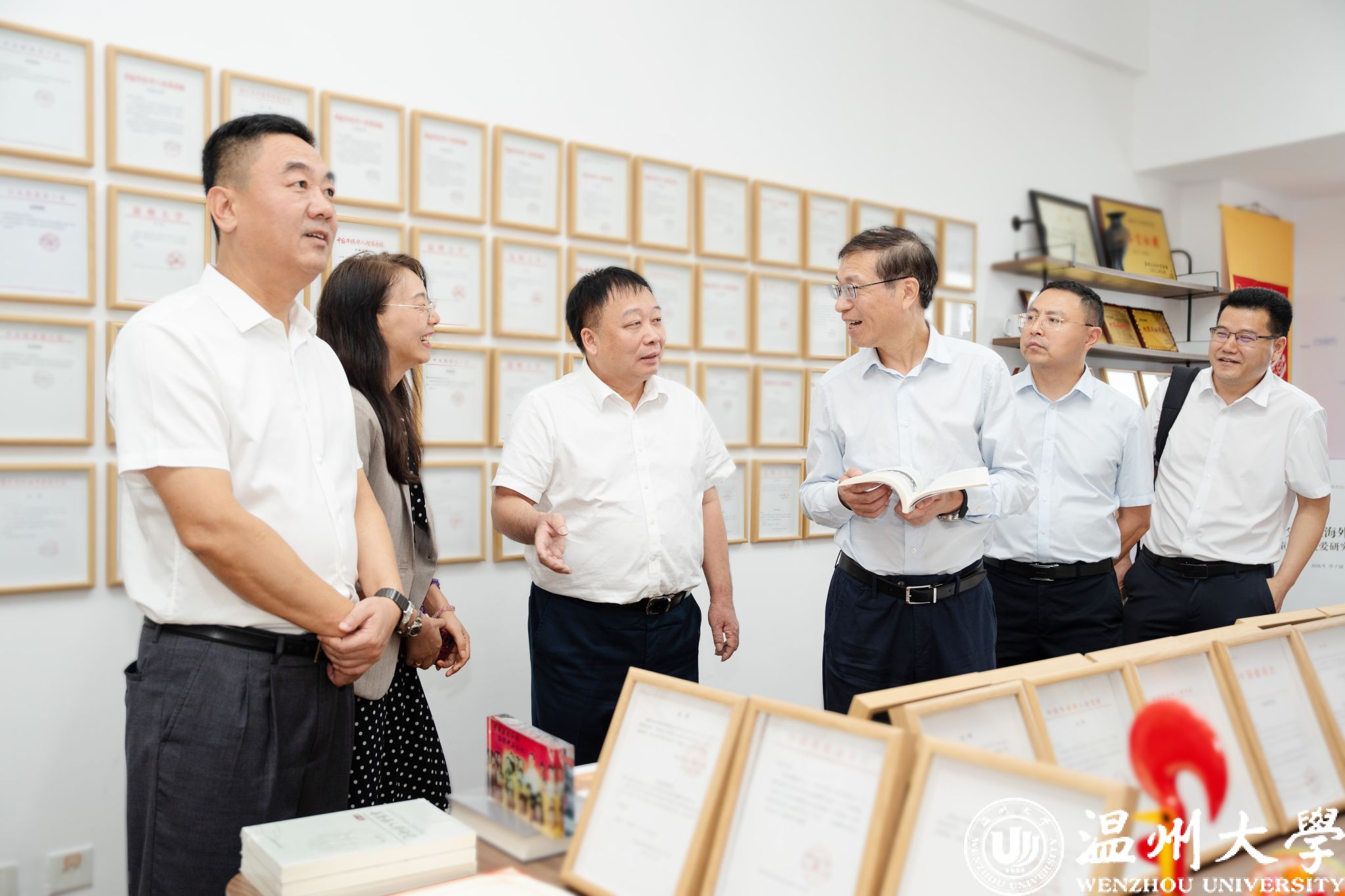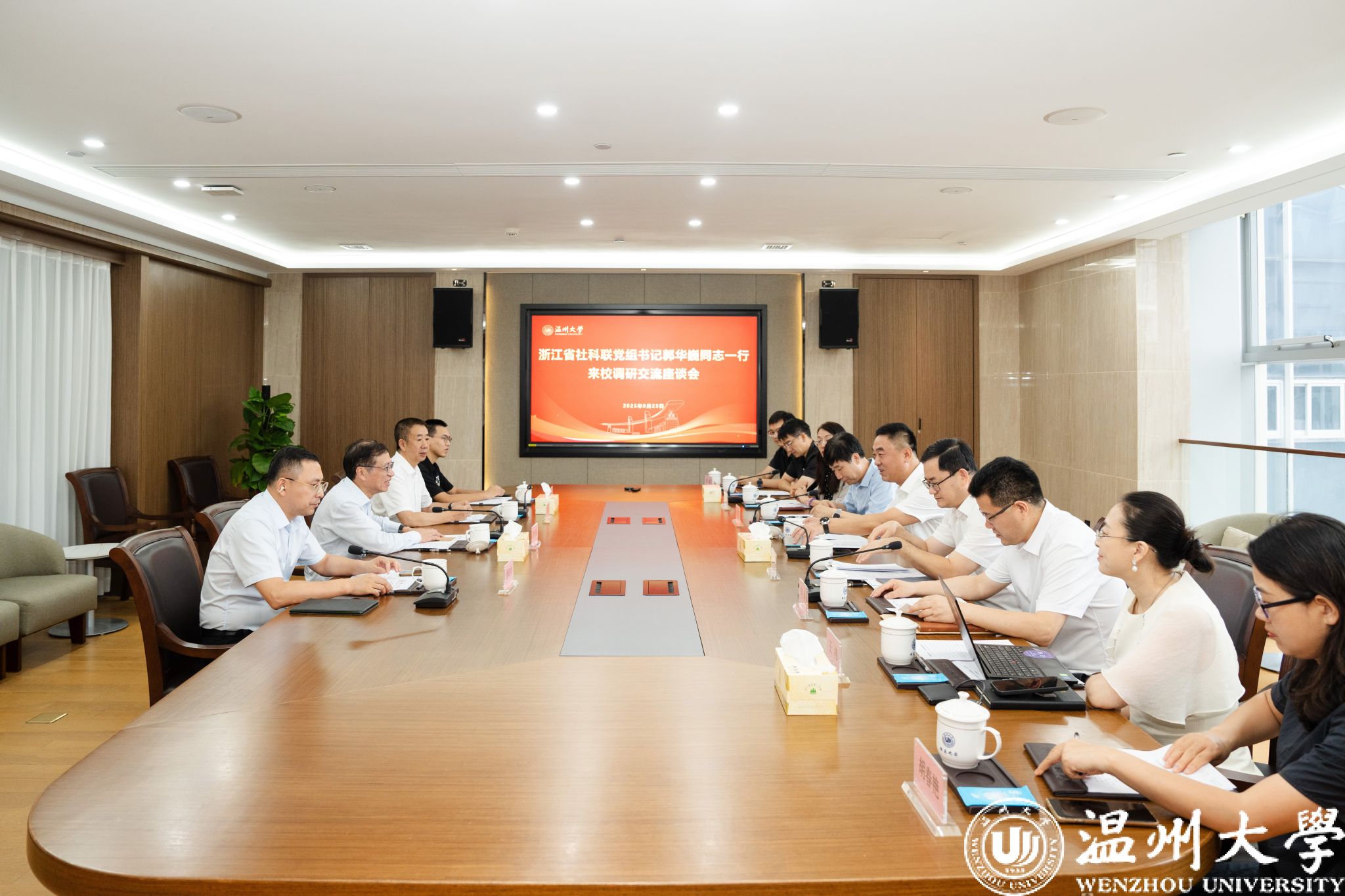 9月23日下午,浙江省社科联党组书记、副主席郭华巍一行来校调研,浙江省社科联党组成员、秘书长陈名义,温州市社科联党组书记、主席潘晓勇,星空平台校领导钱强、赵敏、王军陪同调研。