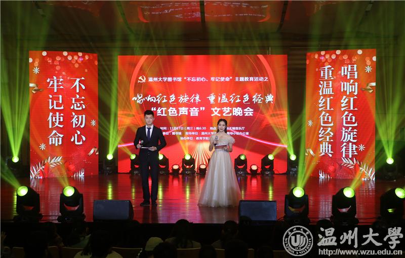 晚会节目丰富,图书馆馆员们朗声诵读毛主席诗词,现场挥毫习近平总书记语录,翩翩起舞放声高歌,赞美党和祖国。温大师生们以朗诵、配音、歌舞、小品、乐曲演奏等表演形式,通过吟咏红色诗词、弹奏红色旋律、传唱红色经典,歌颂党的光辉历史,歌颂英雄的伟大事迹。