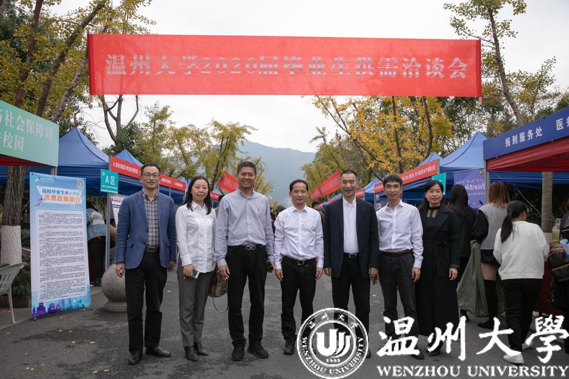为进一步服务广大用人单位和毕业生,更好地搭建“双向选择”的供需平台,11月23日下午,由浙江省教育厅主办,浙江省高校毕业生就业指导服务中心、温州市人力资源和社会保障局、星空平台共同举办的浙江省2020届高校毕业生温州专场招聘会暨星空平台毕业生供需洽谈会在大学生活动中心举行。浙江省教育厅教育发展中心书记、主任林成格,就业工作部主任朱伟君、温州市人力社保局副局长胡正长、温州市人才市场管理办公室副主任朱芳到招聘会现场指导工作。校党委副书记庄兴忠及招就处等相关部门负责人到现场了解用人单位的人才需求和学生应聘情况。