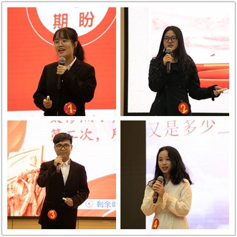 参赛选手紧紧围绕“学习新思想、担当新使命、展现新作为”这一主题,青春激昂,意气风发,用饱满的热情和真挚的情感抒发了对党和祖国的无限热爱,用激昂的斗志和铮铮的誓言表达了不忘初心、共筑中国梦的信念和决心。有的选手在自己的演讲中引经据典,从不同的视角讲述他们对新思想的理解;有的选手以专业为切入点,表达如何在自己的专业领域中担当新使命;也有选手结合个人成长经历,立志做新时代的有为青年。选手们的精彩演讲赢得现场观众们的阵阵掌声。