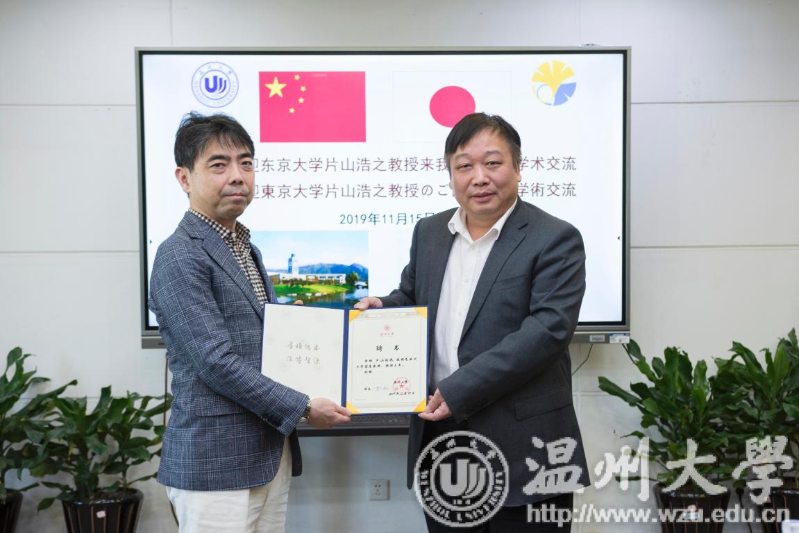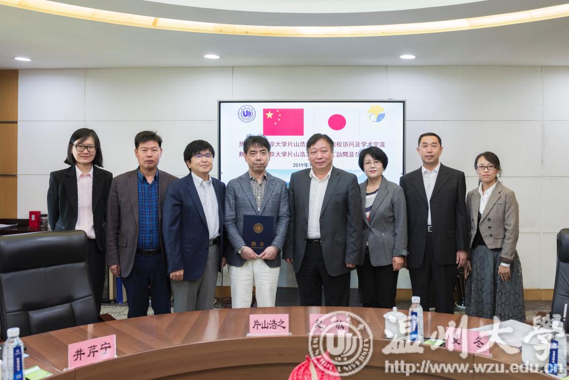 11月15日上午,日本东京大学片山浩之教授来我校交流访问,洽谈人才培养和科研合作合作事宜。校长赵敏教授、生命与环境科学学院院长阎秀峰教授、井芹宁教授、郝爱民教授等教师代表及国际交流与合作处负责人参加了会谈。