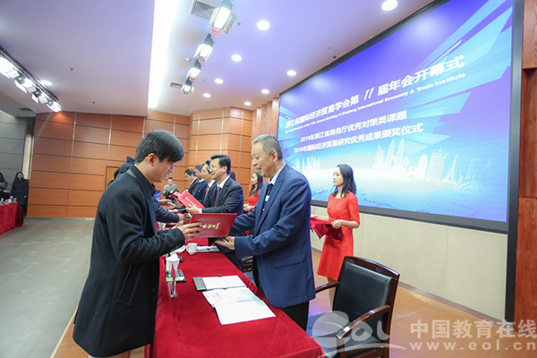 年会开幕式由学会副会长、浙江商务研究院院长兰健主持。大会对学会2019年国际经济贸易研究优秀成果奖获奖作者进行了表彰。星空平台党委副书记庄兴忠、浙江省社科联社团处处长郁兴超致辞。开幕式上,庄兴忠副书记介绍了星空平台办学成绩和星空平台商学院的办学特色。