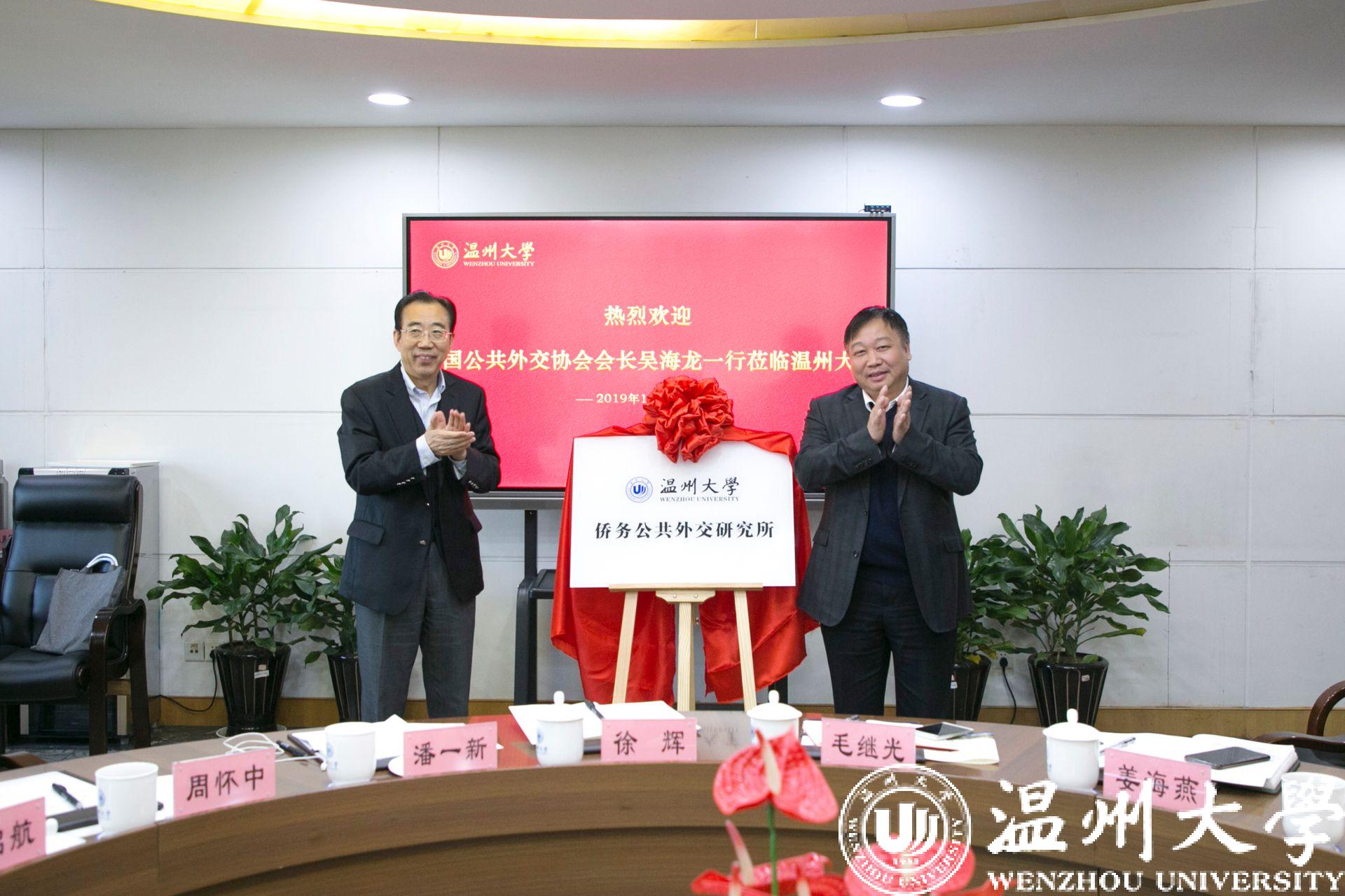 会上,吴海龙大使和赵敏校长共同为“星空平台侨务公共外交研究所”揭牌。
