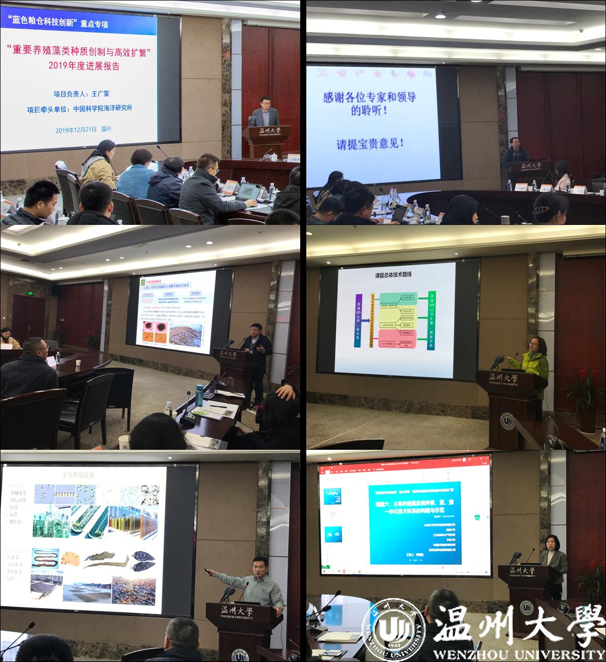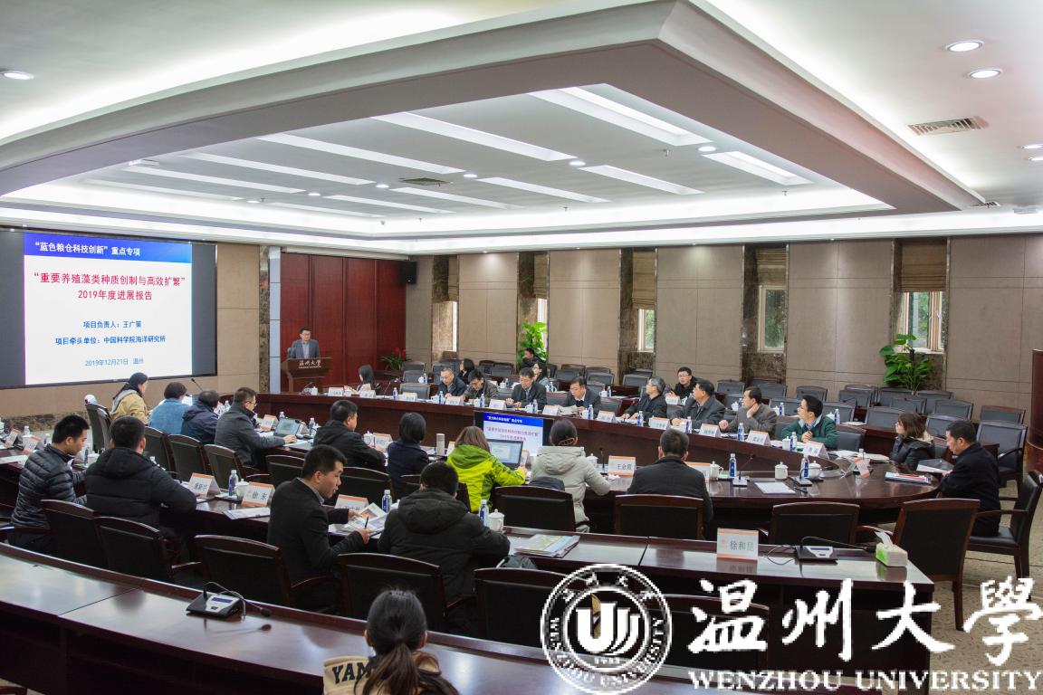 近日,国家重点研发计划“蓝色粮仓科技创新”重点专项“重要养殖藻类种质创制与高效扩繁”项目2019年度项目进展总结及学术交流会在我校岩松堂白鹿厅成功举行。科技部中国农村技术开发中心卢兵友处长及蓝色粮仓专项咨询专家组和项目咨询专家组一行11人莅临会议指导;校长赵敏教授、副校长徐和昆教授、科技处、生命与环境科学学院负责人及部分教师参加会议。会议开幕式由徐和昆主持。