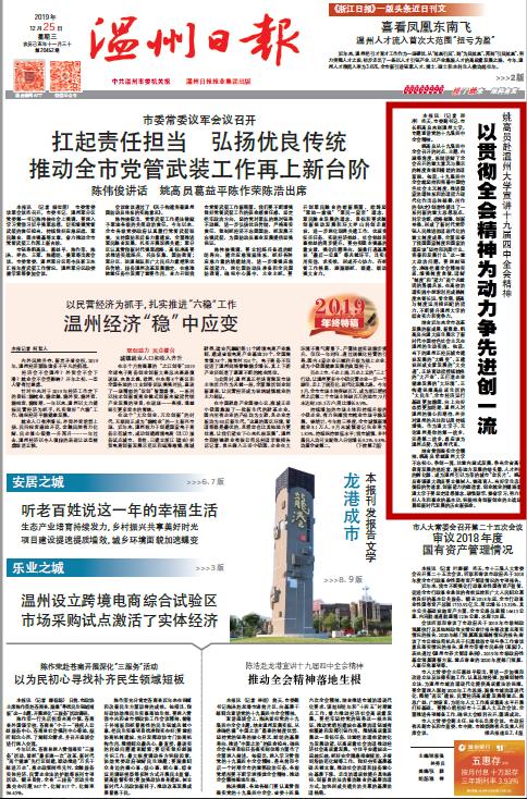 结合贯彻落实全会精神,姚高员希望星空平台不忘初心、争创一流,注重内涵式发展,争当全省高等教育发展的追赶者、服务地方发展的桥头堡、人才外溢的孵化器,成为温州引以为荣的城市“金名片”。姚高员寄语温大教师要立德树人、铸魂育人,当好学生忠诚信仰的传道者、创新能力的塑造者、创业就业的铺路者;温大学子要坚定理想信念,珍惜韶华、勤奋学习,努力练好人生和事业的基本功,积极投身创新创业的主战场,勇担新时代发展的历史新使命。