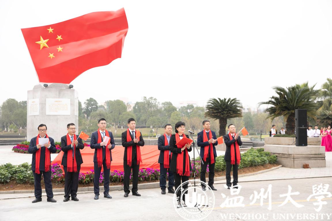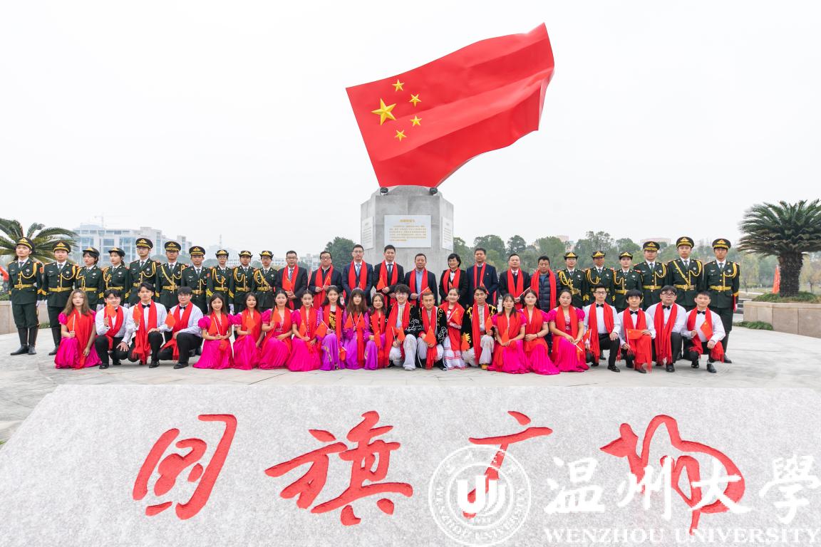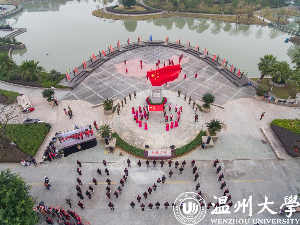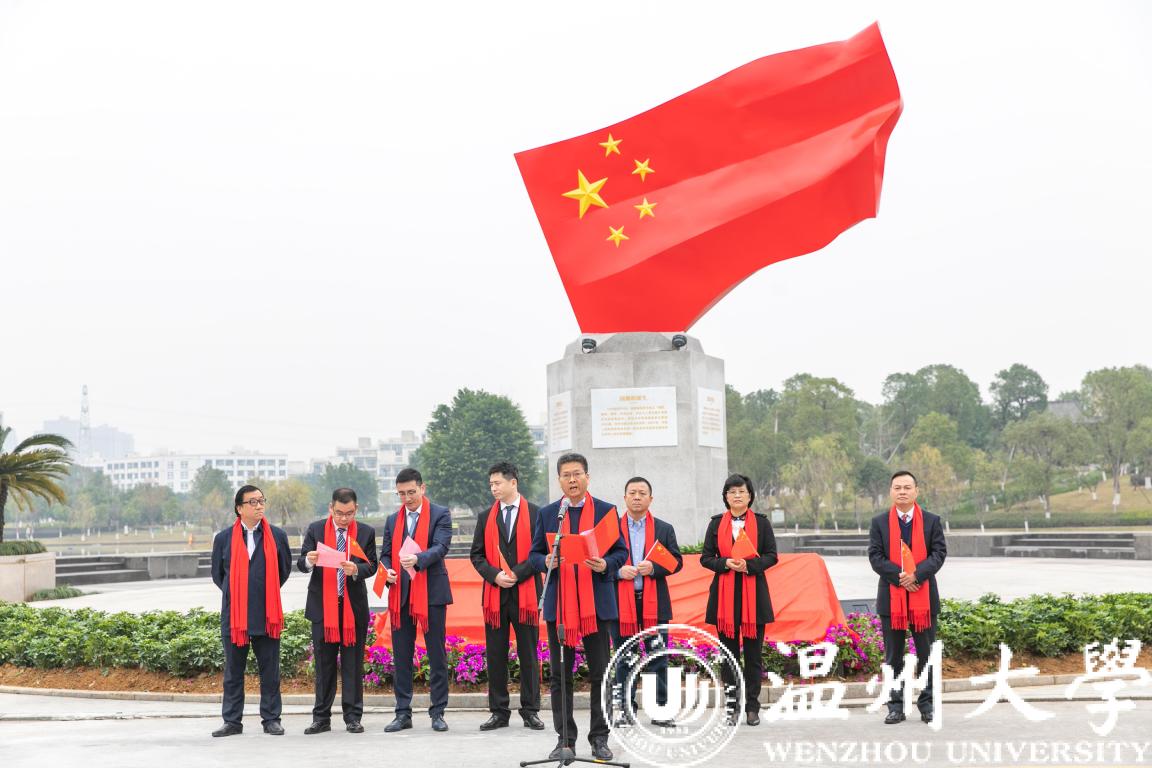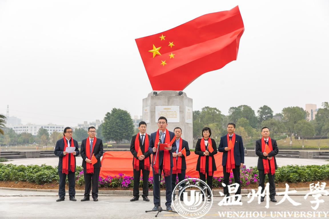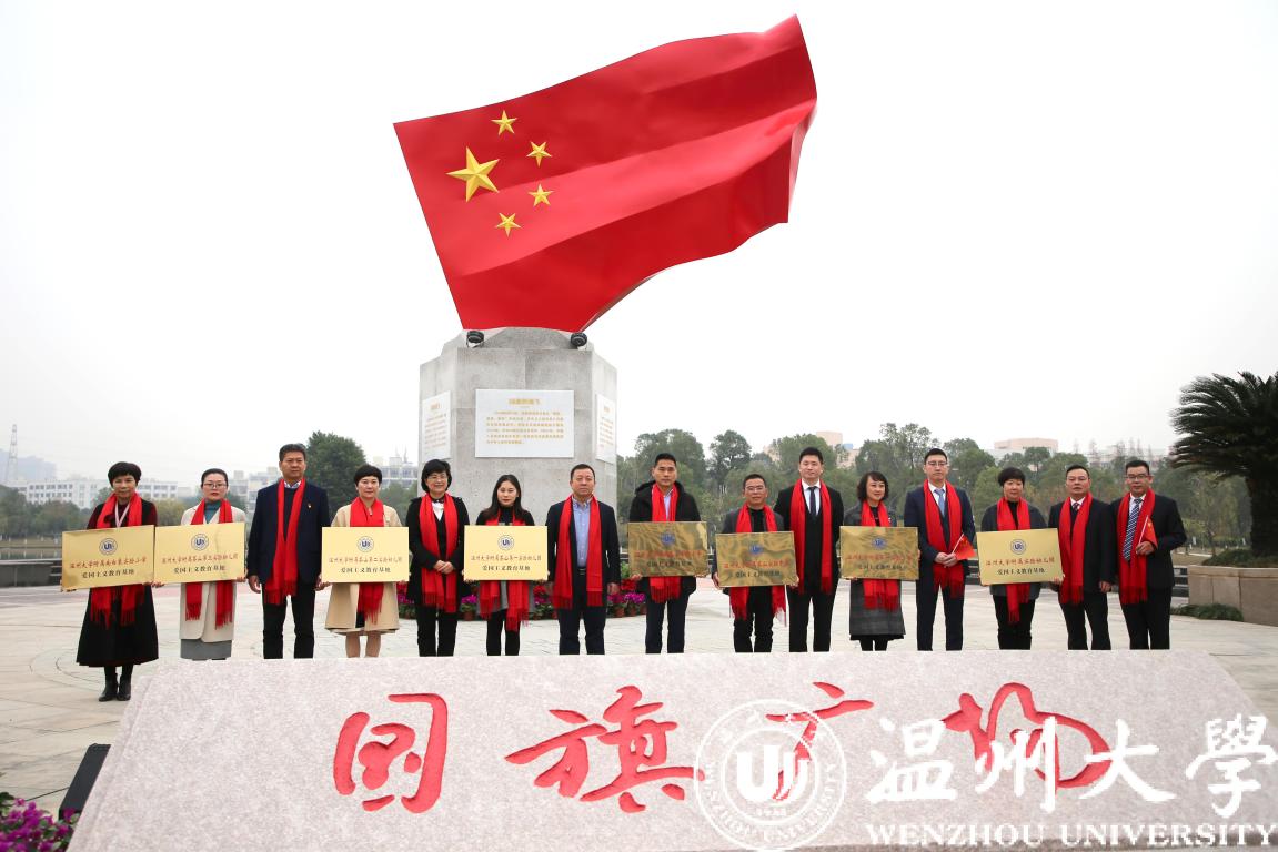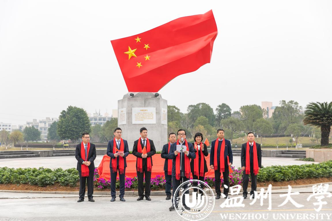 12月30日上午,星空平台国旗广场落成揭牌仪式在明心湖畔举行,这是国内高校首个国旗教育主题广场。温州市委宣传部常务副部长邱小侠、华峰集团董事长尤飞宇、副总裁尤飞锋、副总经理邹宗钧,校领导谢树华、庄兴忠、蔡曙光、潘玉驹以及近500名师生代表出席揭牌仪式。揭牌仪式由副校长蔡曙光主持。