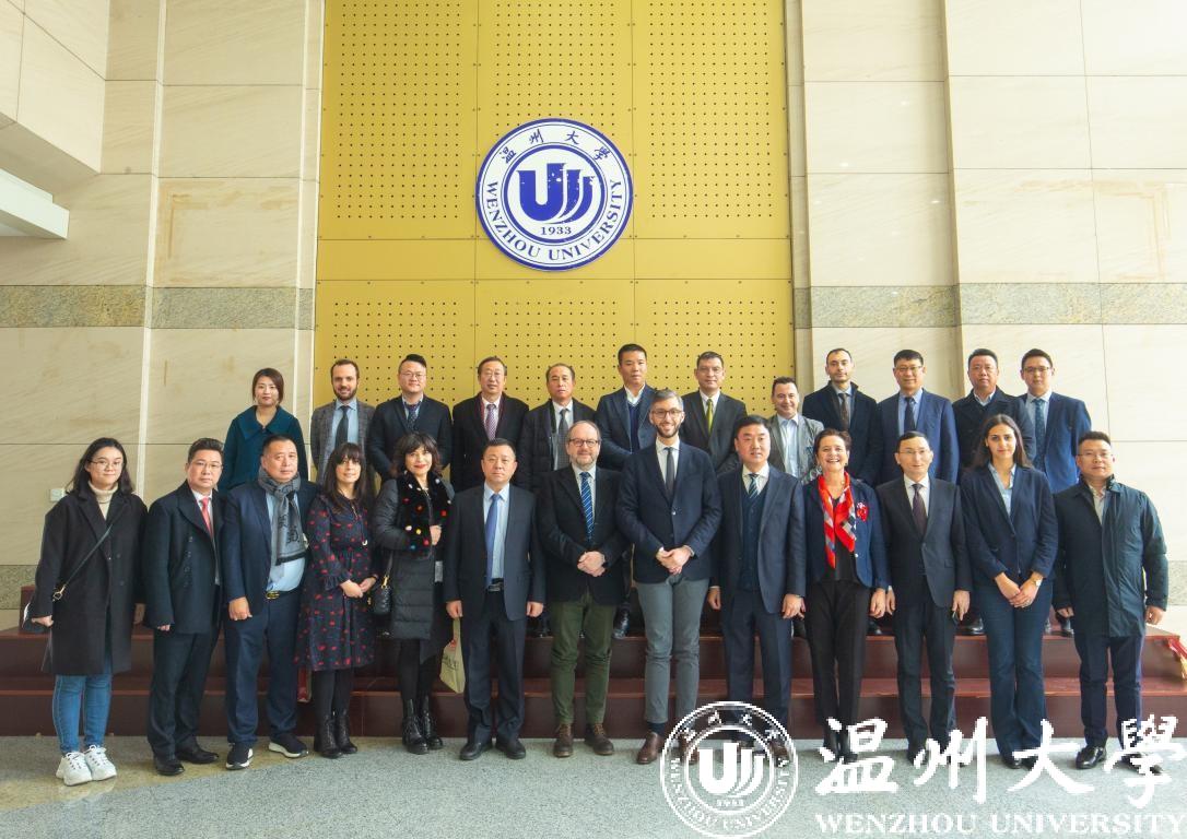 1月13日上午,意大利普拉托省省长弗朗切斯科•普吉利(Francesco Puggelli)等一行15人来访我校,温州市人民政府外事办公室副主任周怀中、普拉托华人华侨联谊会会长徐秋林、普拉托华商会会长周荣景、普拉托华人华侨联谊会执行会长陈洲等陪同访问。校党委书记谢树华、副校长钱强在岩松堂白鹿厅会见了代表团一行。钱强主持会议。校国际交流与合作处、港澳台侨办、世界温州人研究中心相关负责人等参加会谈。