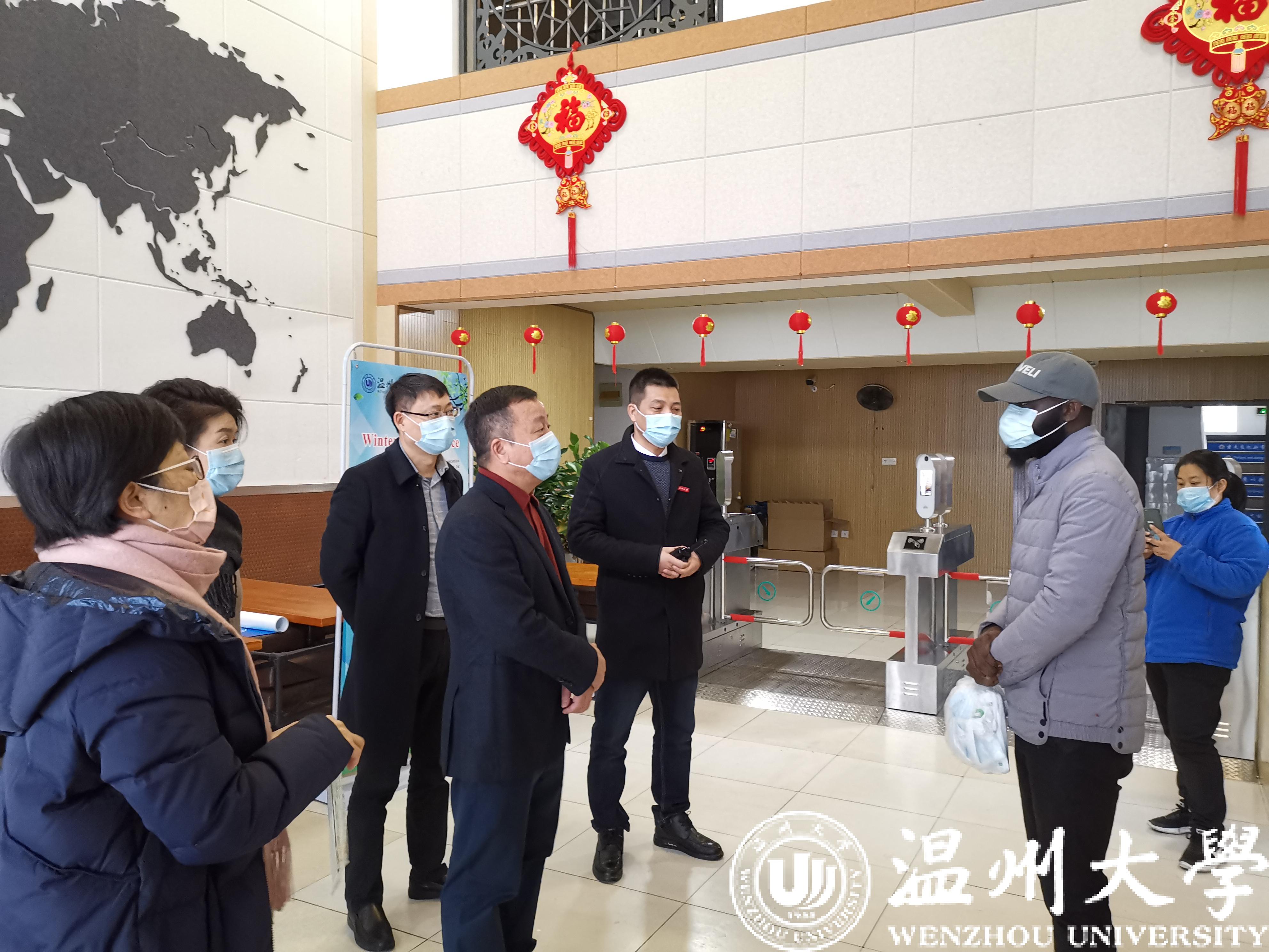 1月26日上午,校党委书记谢树华、副校长蔡曙光以及学校相关部门负责人一行走访学校疫情防控工作一线,检查指导疫情防控工作,慰问春节期间坚守岗位教职员工。