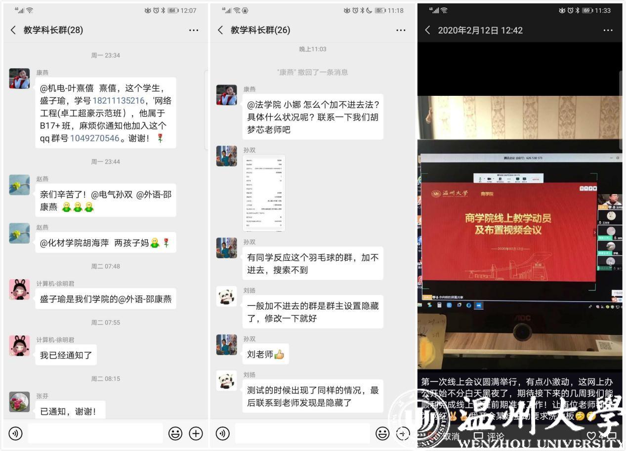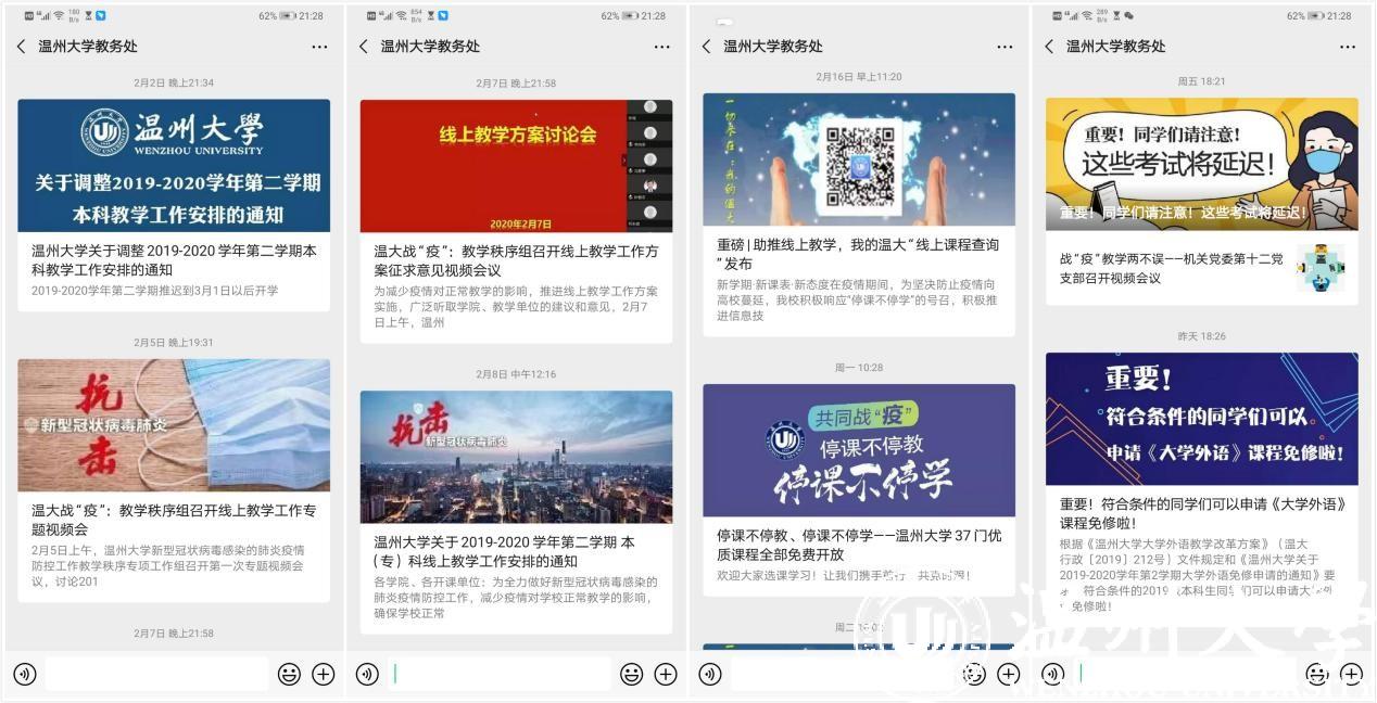 为有序做好疫情期间线上教学组织和教务管理工作,学校提早谋划工作方案,系统安排应对举措。自1月28日起,教务处整理了本学期全校范围开课课程,按开课时间、实验实践类型进行系统划分,汇集课程线上教学信息;学院教务科在2天之内高效完成3184门次课程的1.5万线上教学数据搜集工作。对网络办公形式进行创新,在视频会议、电话、微信群、QQ群的基础上,设计“我的温大”app线上“课程免听”“课程免修”“间断听课”“课程缓考”等微流程,“成绩单”“学籍证明”在线下载远程打印等微程序,精心组织转专业工作线上审核与面试、学籍异动在线审核与审批、各类课程教务系统内改补退选课等工作,实现“学生一次不用跑,审核网上就办好”的目标。同时,教务处针对我校52门优质线上课程信息进行规整与推送,面向全国社会学习者免费开放。