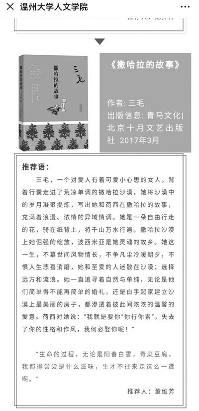 “在疫情最为严重的时候,大家都不能出门,学校要延迟上课,焦虑和无趣慢慢会演变成内心的空虚与不安。我们做这样一个活动,不仅希望同学们在家中能多阅览文艺作品,充实学业,更希望能使大家振作精神,不要陷入无所事事的虚无之中。”活动策划者、人文学院辅导员胡震鹏如是说。