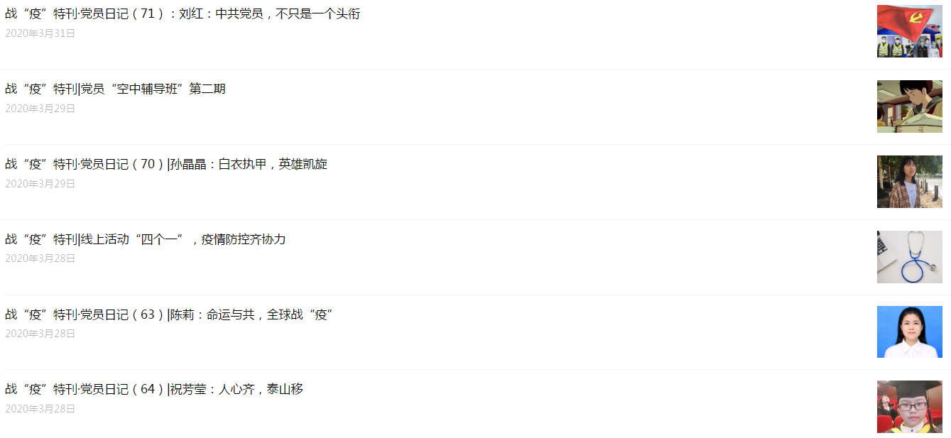 在此次征集活动中,许多的学生党员也积极投稿,撰写着他们眼里的中国和世界。来自17电气2班的学生党员吴泽平,在她的文章《强信心,暖人心、聚民心》中写到“想起在疫情爆发最为严重时刻,多少批党员站了出来,毫无畏惧地踏上了这支援之路,让我对他们对这个时代的英雄感到崇敬,感到了肩上的责任。”来自19级研究生党员游力凡在他的党员日记《中国真好,做中国人真好!》中写到“我看到了关于一名新冠肺炎重症患者的花费‘清单’,整个疗程总共约合72万人民币,这些医疗费用均由国家买单。这是一个多么伟大的国家,多么坚挺的政党,多么顽强的民族才能做到的啊!”