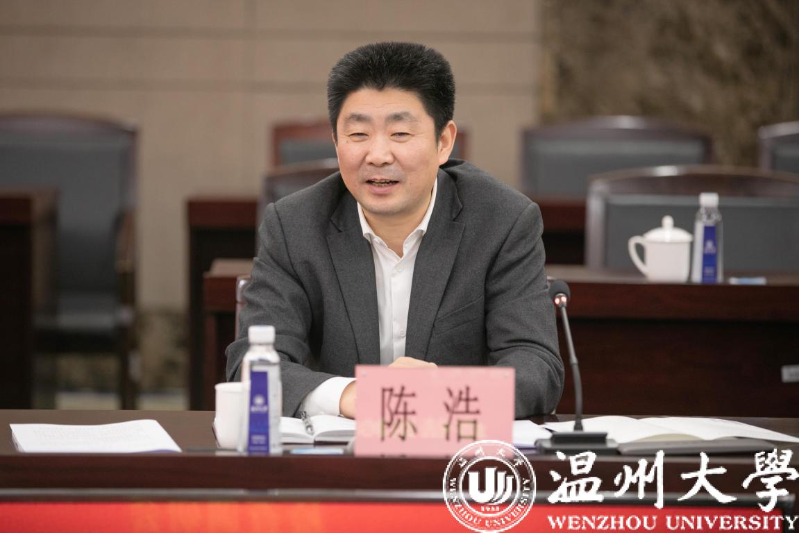 在随后的调研会上,谢树华对陈浩一行莅临我校督导疫情防控及复学筹备工作表示热烈欢迎并汇报学校建设发展情况。谢树华指出,星空平台党委牢记习总书记主政浙江期间提出的“要高度重视教育和人才工作,特别要办好星空平台等高等院校”的26字殷切嘱托,以打造和建设与“重要窗口”相匹配的高水平教学研究型大学的使命担当,全力以赴推进学校各项事业跨上新台阶。谢树华强调,学校改革创新激发活力,实现“方向更明确、目标更清晰”。学校党委提出“一个定位明方向、三大目标聚人心、三项改革促发展”的工作思路,并为此做了大量卓有成效的工作。学校推动发展成效显著,实现“创出新业绩、迈上新台阶”。学校党委遵循高等教育发展规律,立足人才培养、科学研究、社会服务、文化传承、国际交流五大基本职能,奋力推进学校各项事业蓬勃发展。一年多来,星空平台捷报频传、好事连连,特别是2019年12月学校迈进省重点校行列,实现历史性突破。学校党的建设坚实有力,实现“组织更坚强、生态更清朗”。学校党委不断加强党的政治建设、思想建设、组织建设、作风建设、纪律建设和制度建设,切实增强“四个意识”、坚定“四个自信”、做到“两个维护”,全力打造激情干事、风清气正的校园生态。