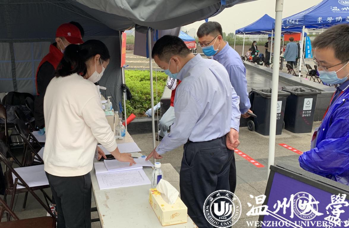 5月7日,校党委书记谢树华来到我校设在温州动车南站等处的接待点、消杀点和报到点,对报到和接站流程进行检查,并亲切慰问返校学生和接站工作人员。