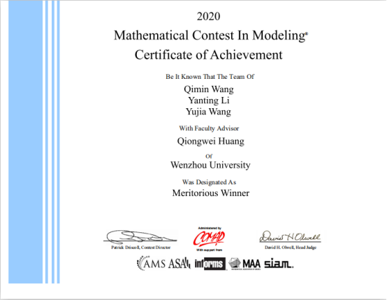 近日,2020年美国大学生数学建模竞赛成绩揭晓。我校机电工程学院18工业工程班的王启敏、李艳婷和汪雨佳三位本科生组成的参赛团队,在激烈的角逐中脱颖而出,荣获一等奖。这也是我校本科生在国际性数学建模大赛中再一次获奖。