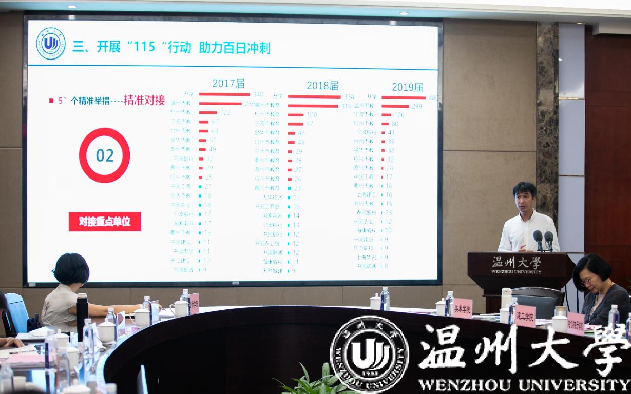 赵敏强调,促进毕业生高质量充分就业是高校落实立德树人根本任务的内在要求,是检验我校省重点建设高校建设成效的重要指标。学校要坚决按照习近平总书记让毕业生“顺利毕业、尽早就业”的指示要求,认真落实“一把手”工程,形成协同推进、全员参与就业的工作机制,切实增强做好毕业生就业工作的责任感、使命感,把毕业生就业工作作为当前一项紧迫的政治任务抓紧抓好,把各方面的力量都调动起来,千方百计做好今年的就业工作,以“暖心、细心、用心、贴心”的工作和服务,为温大2020届毕业生在走出学校、踏上社会的过程中留下一段温暖美好的记忆。