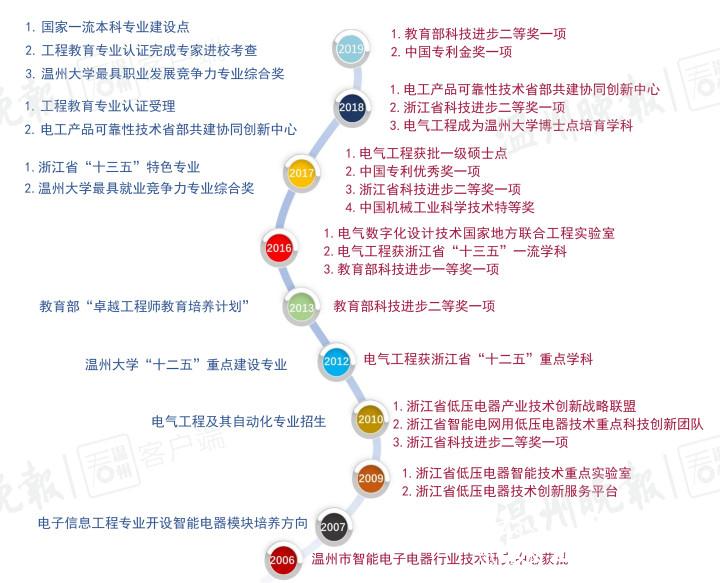 记者在采访中了解到,依托电气工程学科(如下图右),10多年来,温大电气工程及其自动化专业(如下图左)的发展进入“黄金期”,办学成绩有目共睹:不仅入选了教育部“卓越工程师教育培养计划”试点专业、浙江省“十三五”特色专业,还于2019年获批国家一流本科专业建设点,并完成工程教育专业认证专家组进校考查。相关统计资料显示,温大该专业综合实力在全省地方高校中排名第一。