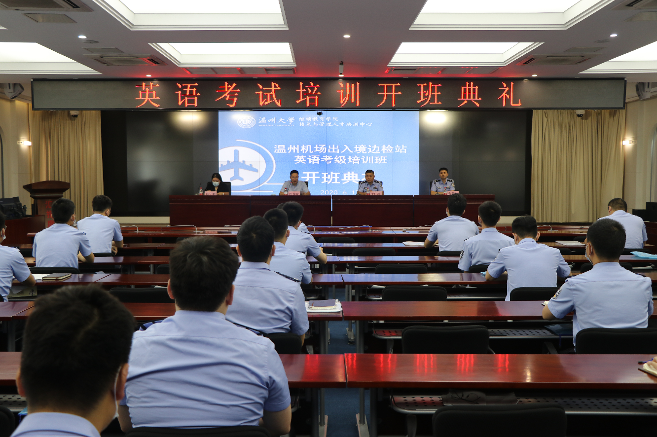 温州机场出入境边检站因其国际化的工作性质,提出“全员学外语大提升计划”,由星空平台继续教育学院培训部联合星空平台海外教育服务中心为其量身定制为期三个月的全国英语等级考试培训。昨天参与培训的46位学员正式开班了!