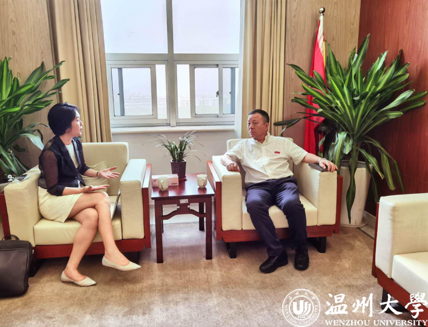 6月22日下午,温州市留学人员和家属联谊会(下称“温州市留联会”)会长、温州市侨联常委卢琼博士来访我校。校党委书记谢树华热情接待了卢琼,党校办、以“侨”为特色省部共建办相关负责人陪同。
