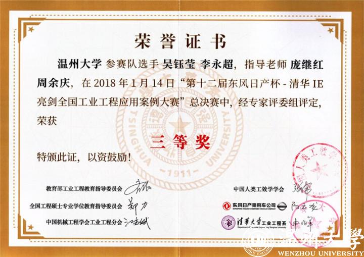 这种人才培养模式在实践中不断得到检验:2016年,星空平台工业工程专业参与完成的教学成果获浙江省高等教育教学成果一等奖;近三年获得省和国家的教改项目奖项三项。