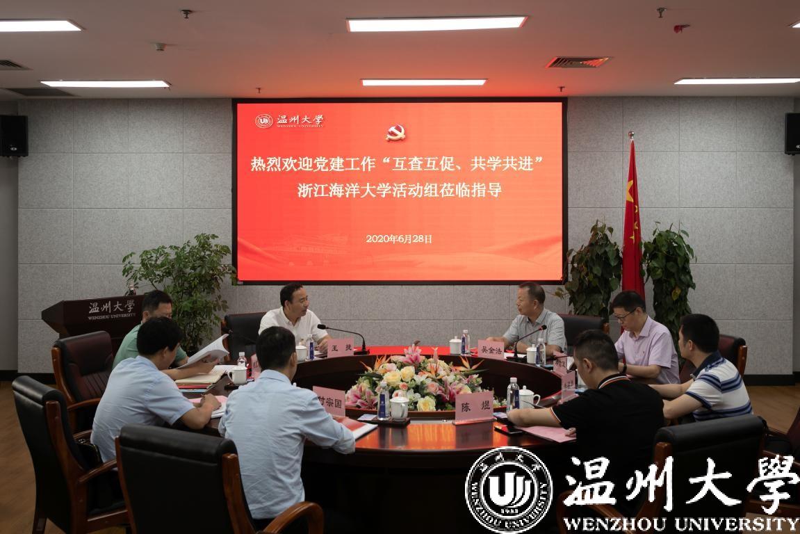 6月28日,根据省教育厅党委关于开展高校党建工作“互查互促、共学共进”活动的统一部署,浙江海洋大学党委副书记王捷带领“互查互促、共学共进”活动小组,来我校开展实地交流。校党委书记谢树华,党委副书记吴金法,党委委员、组织部部长郑信军等参与活动。