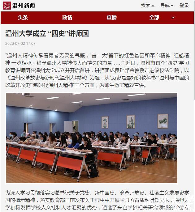 为深入贯彻落实习近平总书记关于党史、新中国史、改革开放史、社会主义发展史学习的指示精神,落实教育部日前发布的师生“四史”学习通知要求,我校积极发挥人文社科人才汇聚优势,遴选了12位校内专家组建“四史”教育讲师团,在校内外积极开展“四史”教育宣讲服务。