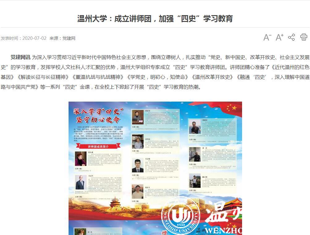 连日来,党建网、中国文明网、中国教育在线、温州新闻、中国高校之窗等众多媒体高度关注、竞相报道我校围绕立德树人,加强“四史”教育的系列举措。