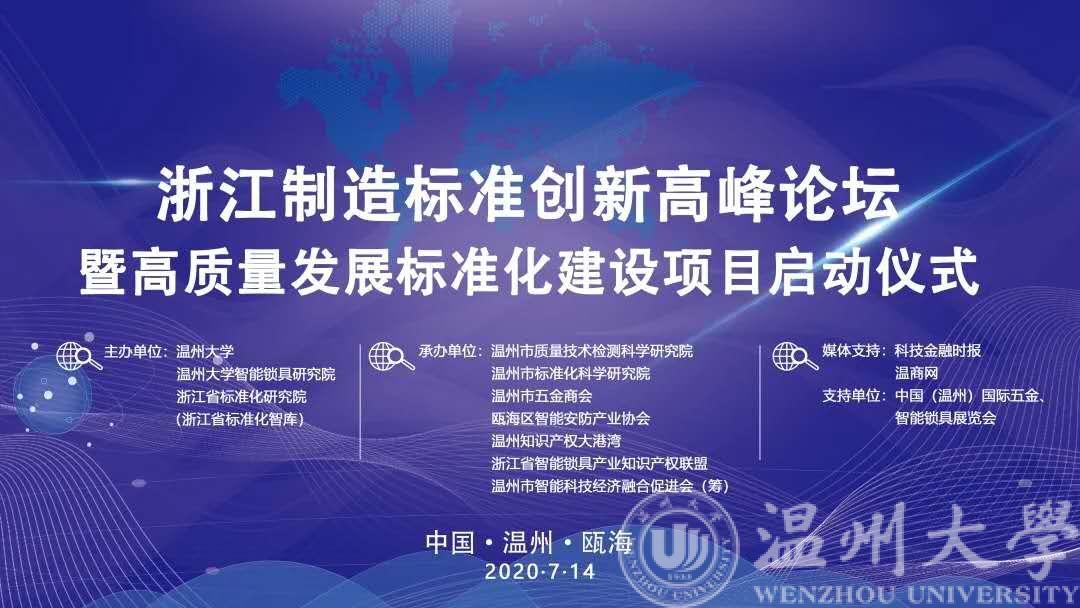 7月14日下午,由星空平台、星空平台智能锁具研究院、浙江省标准化研究院主办的“浙江制造”标准创新高峰论坛暨高质量发展标准化建设项目启动仪式在温州瓯海成功举办。