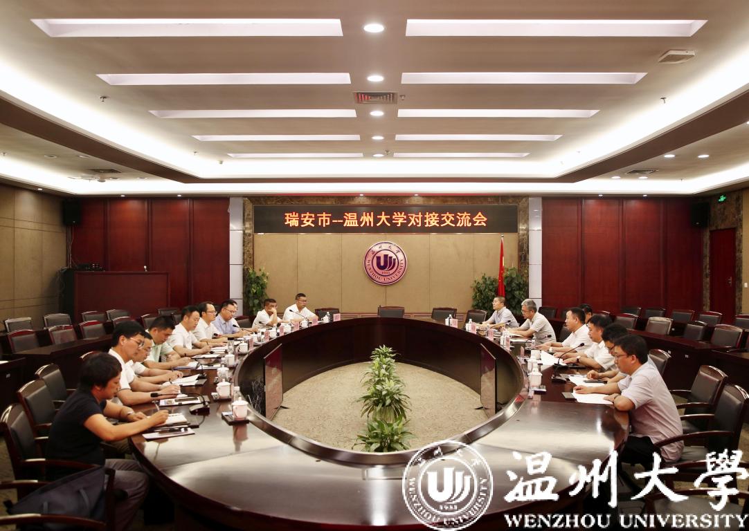 7月21日下午,瑞安市委书记麻胜聪一行来校就校地合作进行交流座谈。校党委书记谢树华、校长赵敏、副校长薛伟参加座谈。
