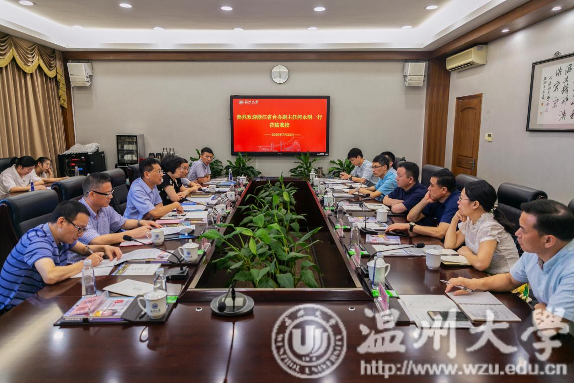 7月22日下午,浙江省人民政府台湾事务办公室副主任何永明率省台办、温州市台办一行6人莅临我校调研。校党委书记谢树华、副校长薛伟出席座谈会。