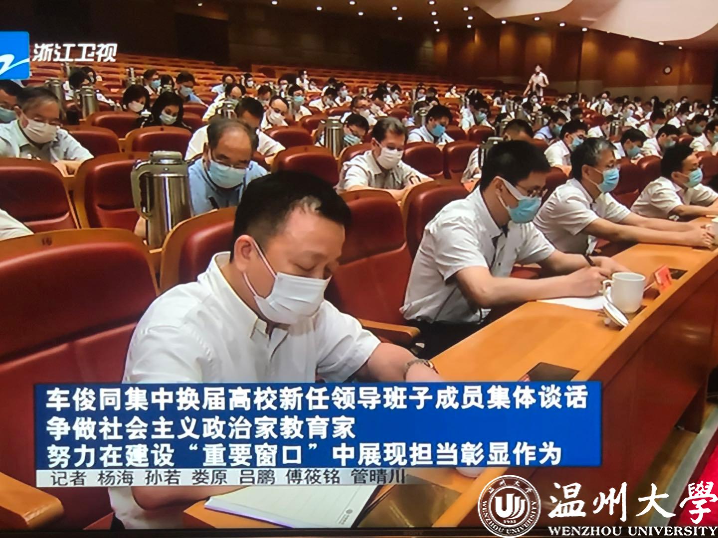 7月23日下午,省委召开高校新任领导班子成员集体谈话会。车俊书记、陈金彪秘书长、朱国贤部长、黄建发部长、成岳冲副省长等省领导出席,各市党委负责人,省纪委监委、省委组织部、省教育厅主要负责人,全省各高校党委书记、校长参会。我校谢树华书记和赵敏校长参加会议。