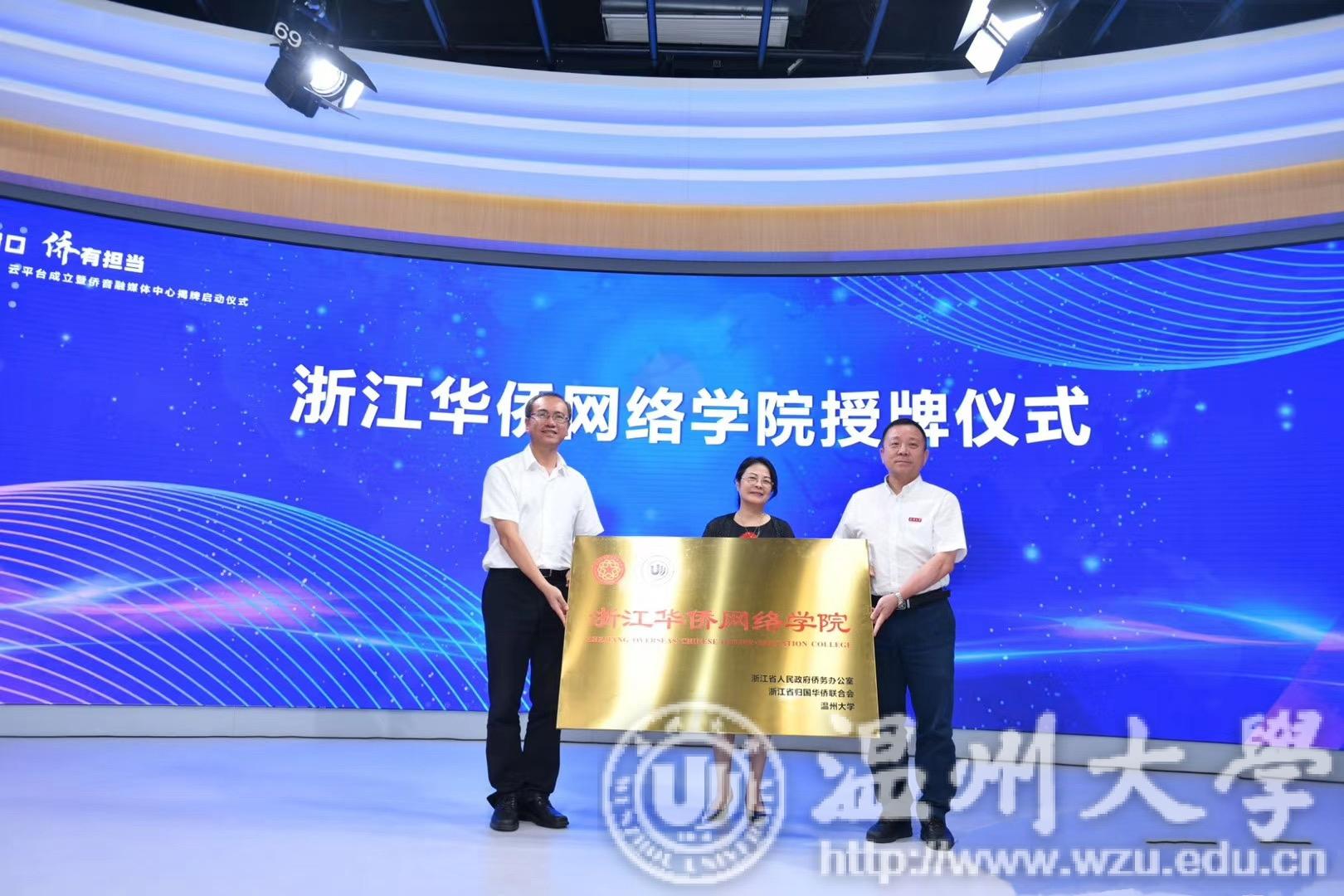 会上,吴晶为浙江华侨网络学院授牌,谢树华和张维仁共同揭牌。