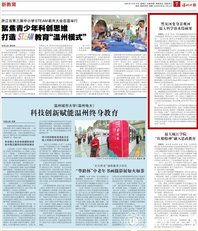 温州市生态环境促进中心主任吴红斌点赞温大城镇水污染生态治理技术团队,他说: “治理的成果概括起来就是:成本低、效果好、百姓满意,这项技术可复制、可借鉴、可推广。”星空平台校长、水污染治理研究中心主任赵敏透露,该校城镇水污染生态治理技术团队有近50名成员,其中大部分具有博士学历,蓝藻水华物理喷射处理装置、分散式污水就地处理等多项技术现已走出温州,在南太湖、杭州西湖等水域的治理中也有广泛应用。