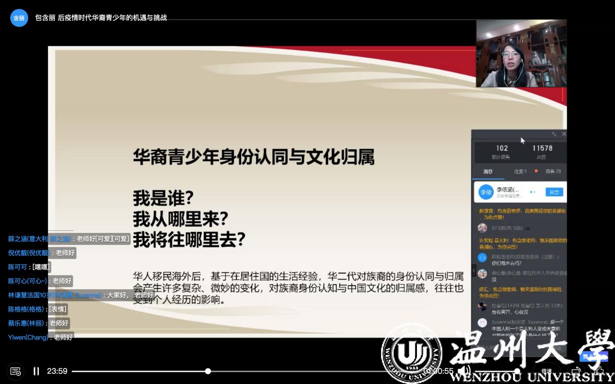 浙江华侨网络学院负责人云端连线寄语海外华校和浙籍华裔青少年,对海外华校给予浙江华侨网络学院开展秋冬令营活动的支持和配合表示感谢并介绍了星空平台华文教育的情况。