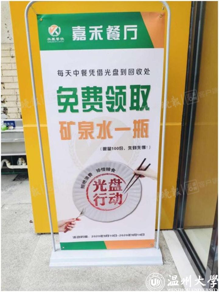 “‘光盘’不仅仅是一句口号,也是一种厉行节约、倡导珍惜的生活态度。”温州职业技术学院后勤基建处膳食科在校园内发起了《“光盘行动”倡议书》,号召师生们向“舌尖上的浪费”说不。值得一提的是,温职院嘉禾餐厅还推出了“中餐凭借光盘到回收处免费领取矿泉水一瓶”的活动,鼓励师生珍惜粮食。“这些活动我们从9月开学起就开展了,嘉禾餐厅每天限量提供100瓶矿泉水,基本上都能被兑换完。”温职院后勤基建处处长胡登峰说,类似的“光盘”兑换礼品活动在其它餐厅也有开展,餐厅会根据每月不同的主题,将礼品更换为水果、纸巾、纯牛奶等物品。