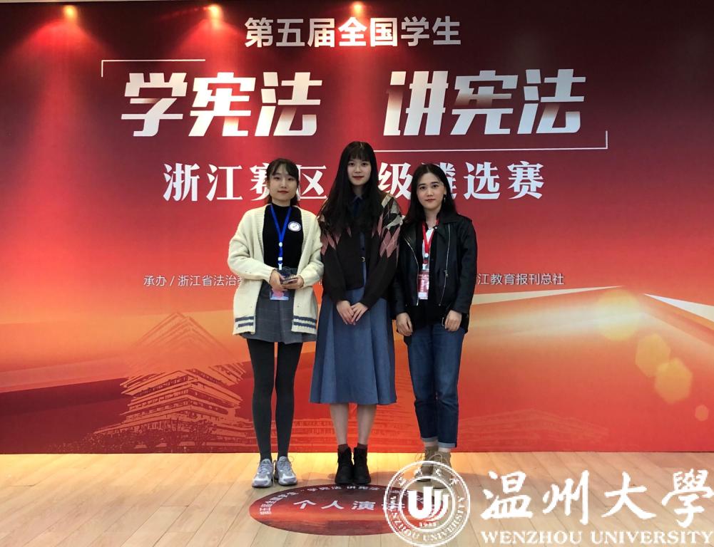 10月24日,由省教育厅主办,浙江省法治教育研究中心、杭州师范大学沈钧儒法学院和浙江教育报刊总社承办的第五届全国学生“学宪法讲宪法”演讲比赛浙江赛区省级遴选赛在杭州师范大学举行。经过主题演讲和命题演讲两轮紧张比拼,来自我校法学院的大三学生齐倩凌同学最终脱颖而出,斩获高校组第一名,并将代表浙江出战全国总决赛。