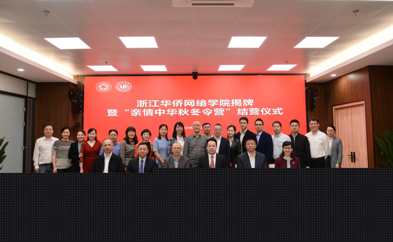 中国侨联、省侨办、省侨联、温州市侨联、校相关部门及学院负责人、云端“亲情中华·秋冬令营”海外华文学校校长、学员、家长代表等参加仪式。