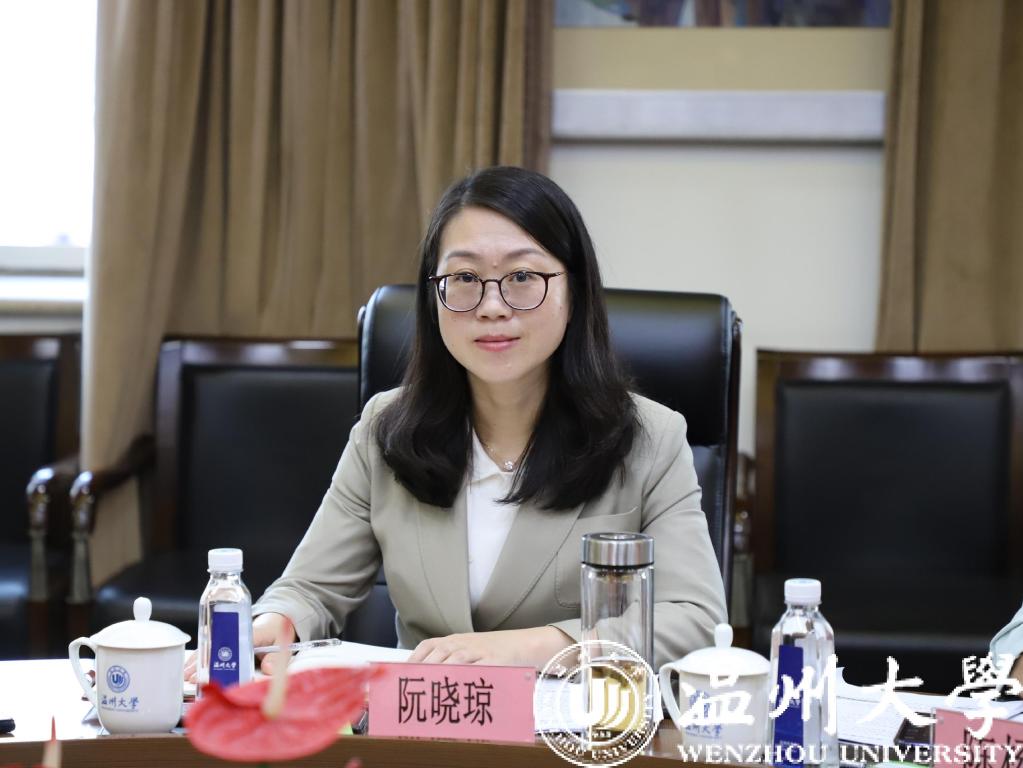 10月27日下午,龙港市人民政府副市长阮晓琼一行来校调研,并洽谈基础教育合作办学事宜。校党委书记谢树华、副校长薛伟出席会议。